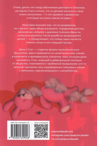 Words dropped by a doctor in the hospital ten years ago led Stas to believe that he must earn his life through actions - and this led to depression, which his mom doesn't believe in at all. Dani's mom instilled in him that he was a prodigy, but by the age of ten, the deception was revealed. A stolen childhood, excessive stress and pressure pushed Danya down a slippery slope. After the rehab, he returns home - and discovers that his mom is now trying to mold a genius out of his little sister. Danya and Stas are both physics and math students. Danya copes with his aggression by getting into conflicts and trying on the role of a lifeguard while the situation at home heats up. Stas, who lives in voluntary isolation from society, faces a bigger problem: someone starts sending him mutilated teddy bunnies with notes encouraging him to commit suicide.....