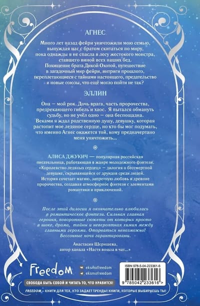 This is the single-volume collector's edition of Alisa Djukić's "The Kingdom of Frozen Hearts" duology—a true gift for fans of the series and fans of "The Cruel Prince"! Now the entire story of Agnes Erkenst—an immortal girl torn between the human world and the secrets of the fairies—is collected under a single cover.