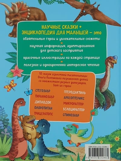 Who are dinosaurs? When did they live? What were they like? Surely your child has already asked you these questions. Olga Kolpakova's useful fairy tales have answers to them. Your little one will learn who was the most ferocious predator, why an ankylosaurus needed a mace, who had the longest neck, why a triceratops needed a bone collar and many other interesting facts.