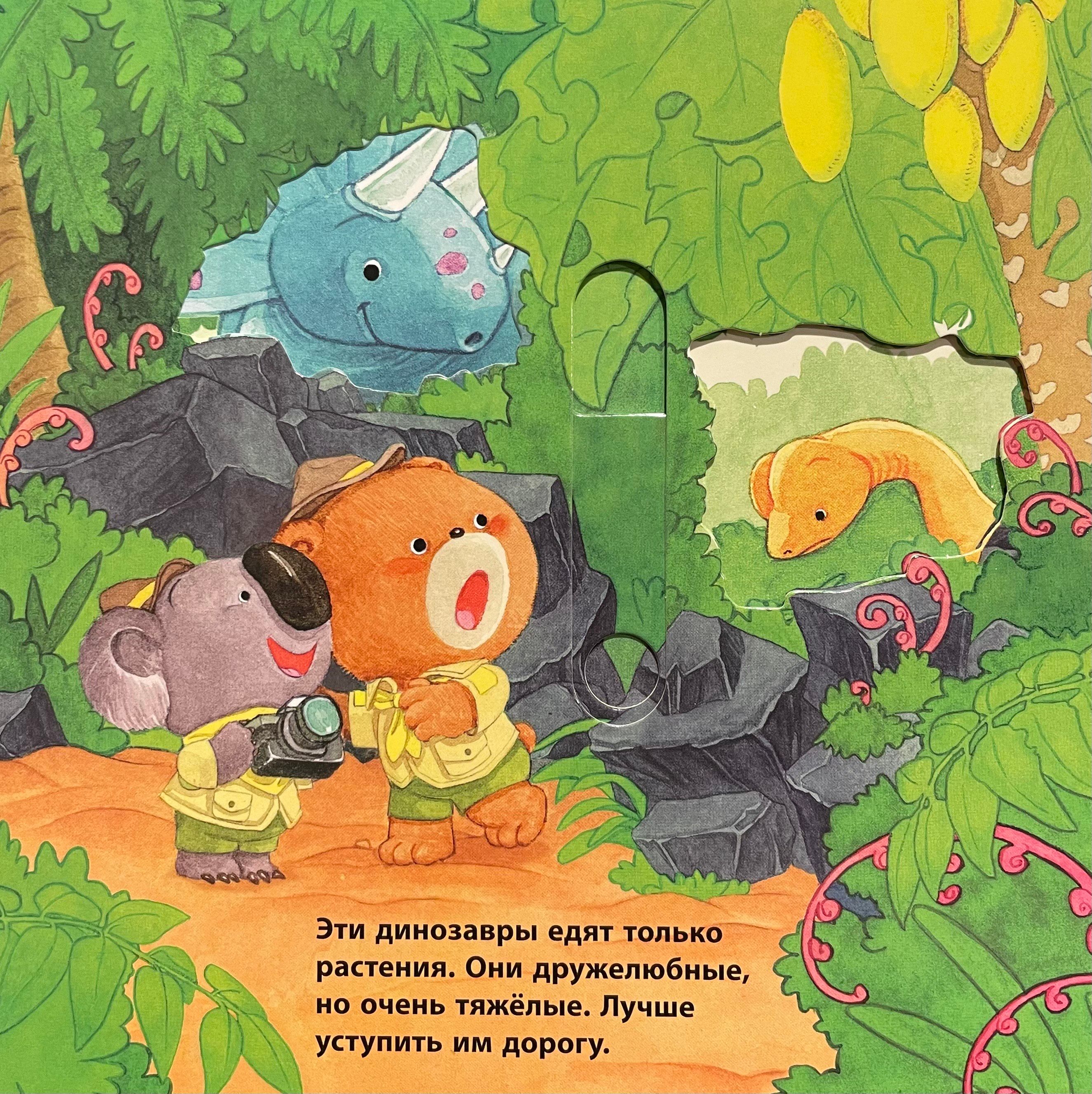 Join Mishka and his friends in a unique park where the most ancient inhabitants of our planet live—dinosaurs. On land, in the water, and in the air—you'll meet them everywhere! Some dinosaurs are friendly, others not so much; some eat grass and hide behind trees, while others need to be fed meat. Don't worry, it's completely safe to observe them! Go ahead!
