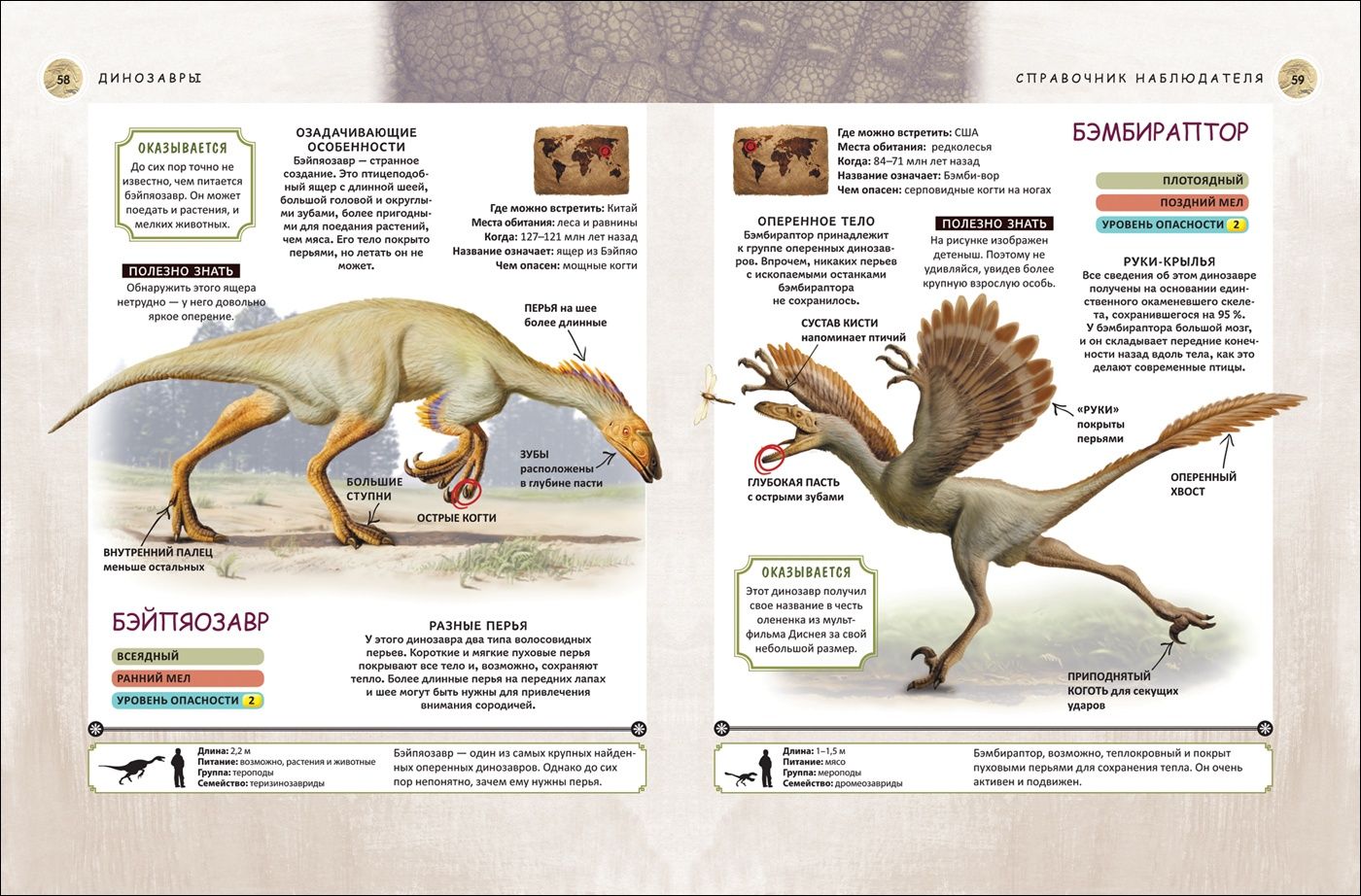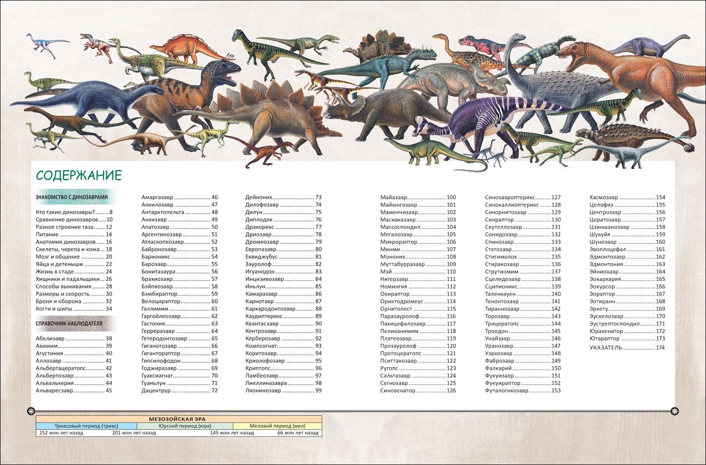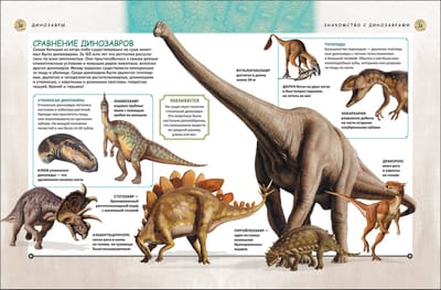 The book offers the reader to travel back millions of years to the age of dinosaurs. They are amazingly diverse: predatory and herbivorous, bipedal and quadrupedal, small and huge, covered with scales and feathers. All ancient lizards are classified into groups and families. Each dinosaur is described in detail: where it can be found, what it looks like, what it eats, and how dangerous it is.