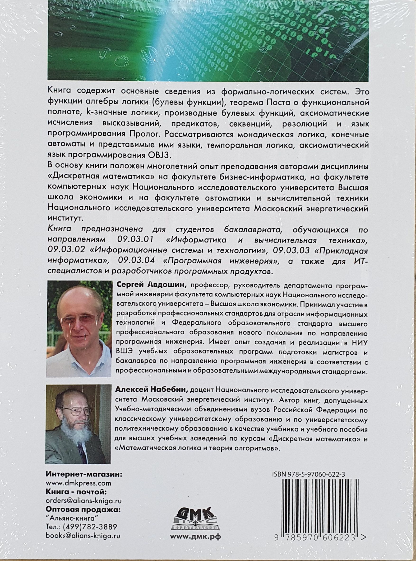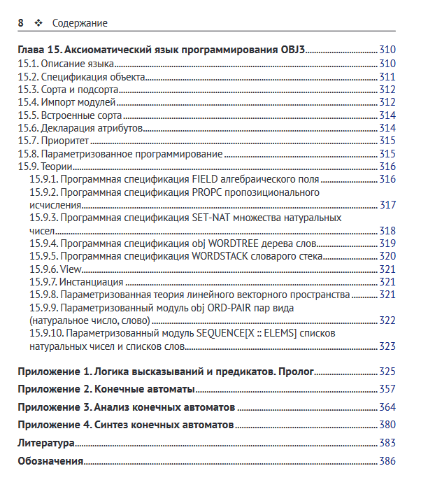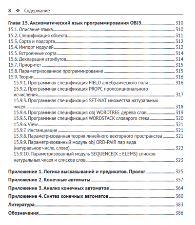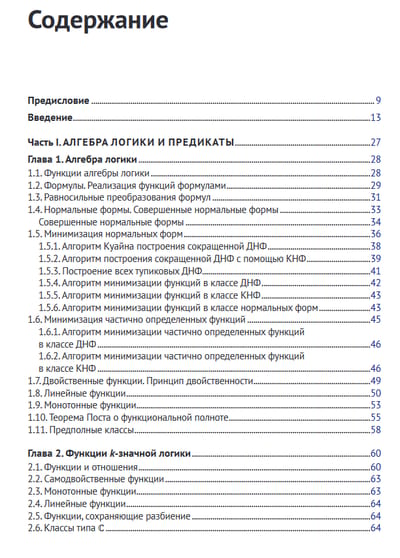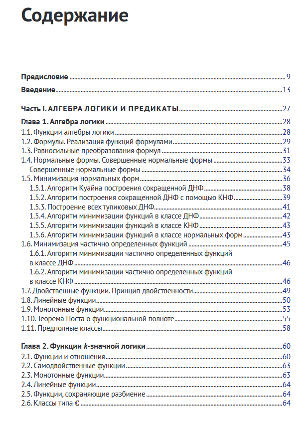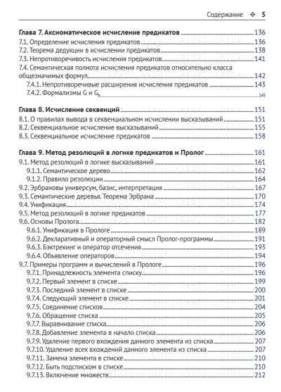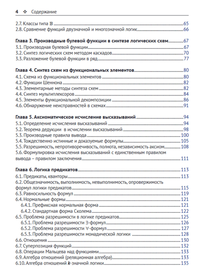 The book contains basic information from formal logic systems. These are functions of algebra logic (Boolean functions), Post's theorem of functional completeness, k-valued logics, derivatives of Boolean functions, axiomatic calculi of statements, predicates, sequences, resolutions, and the programming language Prolog. Monadic logic, finite automata and the languages represented by them, temporal logic, and the axiomatic programming language OBJ3 are considered.