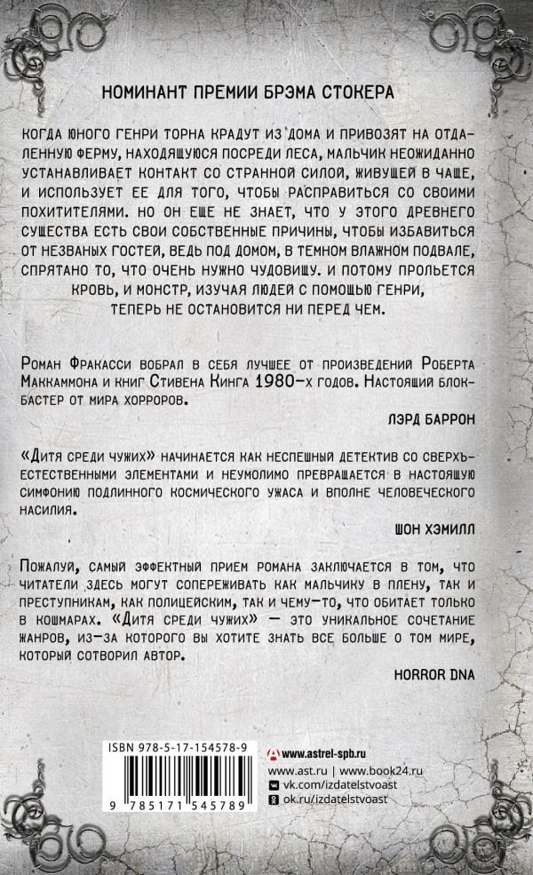 When young Henry Thorne is stolen from his home and brought to a remote farm in the middle of the woods, the boy unexpectedly makes contact with a strange force that lives in the forest-and uses it to take down his captors. But he does not yet know that this ancient creature has its own reasons to get rid of uninvited guests, because under the house, in a dark, damp cellar, hidden something that is very much needed by the monster. And so blood will be spilled, and the monster, studying humans with Henry's help, will now stop at nothing.