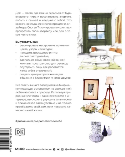 Leading sustainable architecture expert Oliver Heath provides 100 proven interior design ideas and tips based on research into sustainable and biophilic design. Using natural elements and design patterns, you will create a space in which you feel comfortable and relaxed. The tips in the book are suitable for different spaces and budgets, and illustrations by Russian designer Sergei Tikhomirov will tell you how to put the ideas into practice.