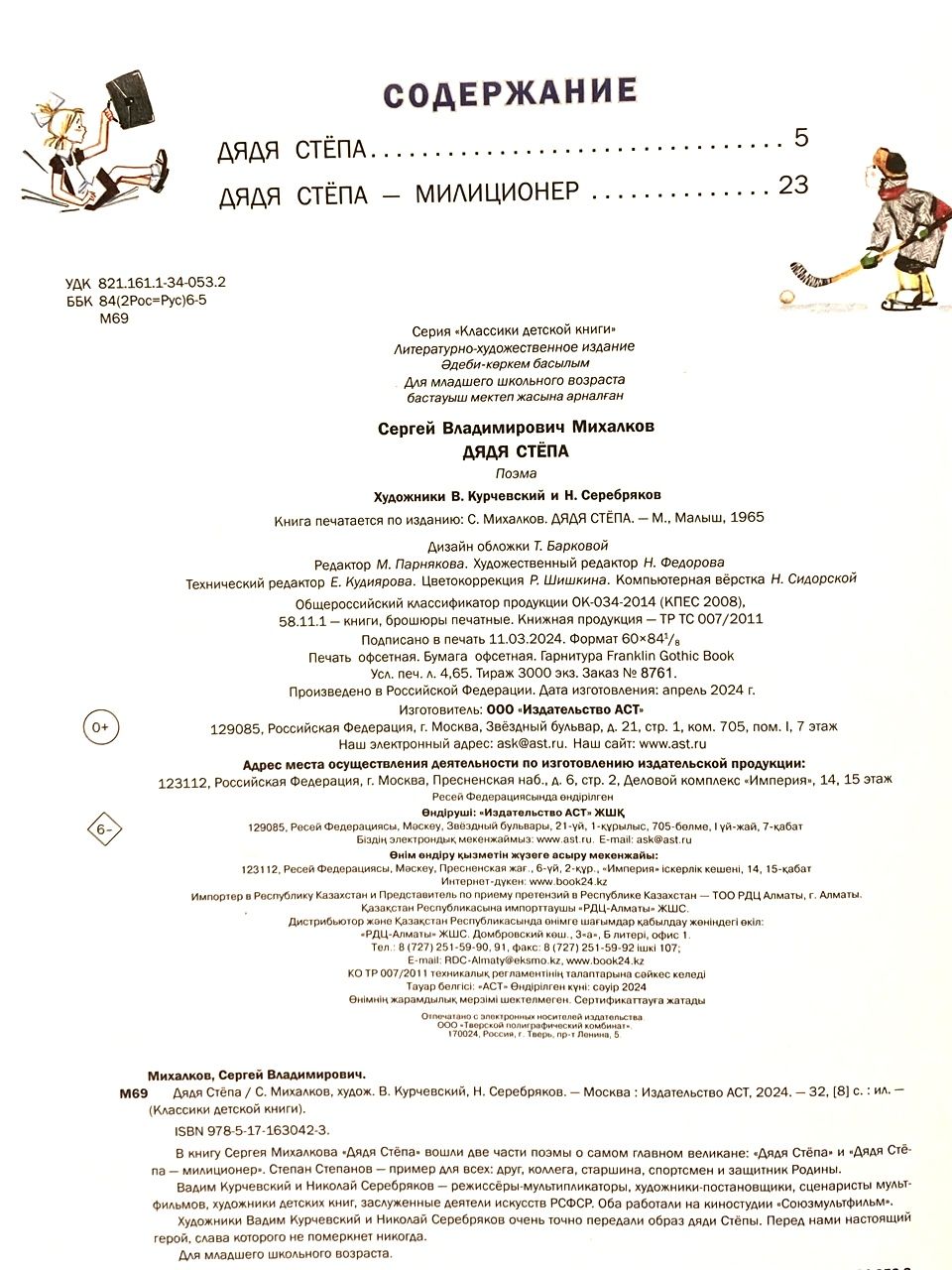 The book of Sergei Mikhalkov “Uncle Styopa” includes two parts of the poem about the most important giant: “Uncle Styopa” and “Uncle Styopa is a policeman”. Stepan Stepanov is an example for everyone: friend, colleague, petty officer, athlete and defender of the Motherland. Vadim Kurchevsky and Nikolai Serebryakov are animated directors, production artists, cartoon writers, children’s book artists, honored artists of the RSFSR. Both worked at Soyuzmultfilm film studio.
