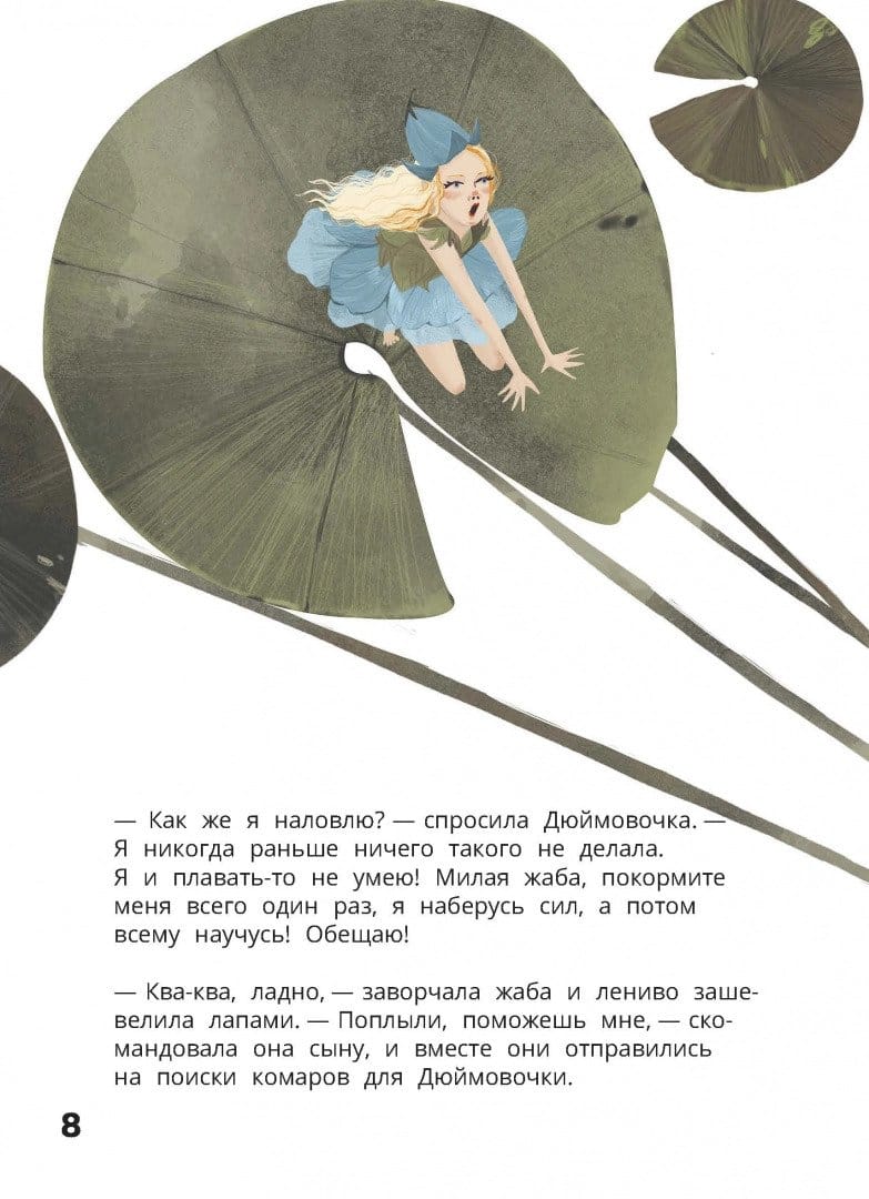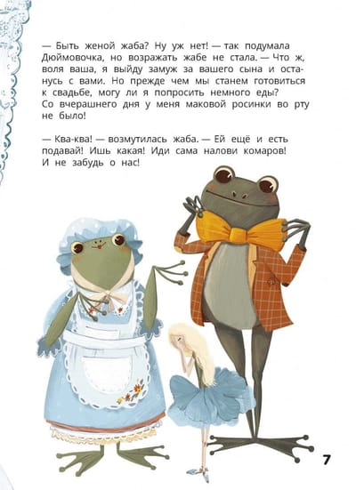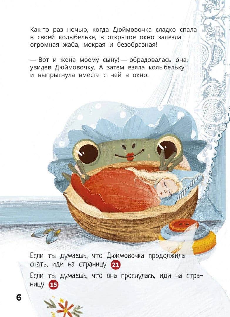 Once upon a time, a girl was born from a magic seed, and her name was Thumbelina. Do you think you know the continuation of this fairy tale? In the book-quest, the reader can choose what happens to the main character. Will Thumbelina want to go home to her mother sooner or will she go traveling with a swallow? Or maybe she will open a school for frogs and dragonflies?