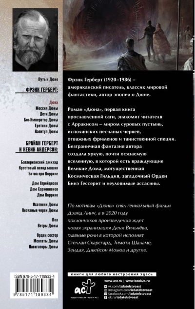 The novel "Dune", the first book of the acclaimed saga, introduces the reader to Arrakis - a world of harsh deserts, giant sandworms, brave freemen and mysterious spice. The author's boundless imagination has created a vivid, almost tangible universe with warring Great Houses, a powerful Cosmic Guild, the mysterious Order of Bine Gesserit and elusive assassins.