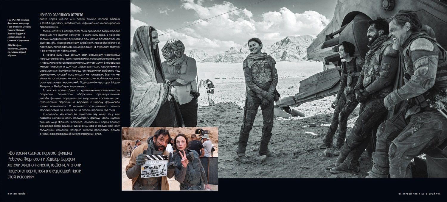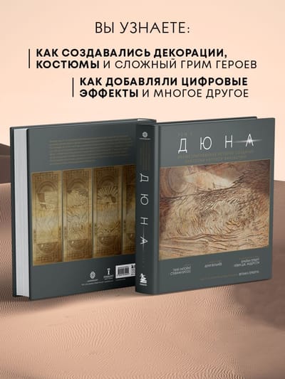 "Dune" is a triumph of cinematography. Fantastic worlds of Arrakis come to life not only on the screens, but also on the pages of this book. The director's wife, Tania Lapointe, will honestly tell you what it cost Denis Villeneuve to shoot the second part. Fresh interviews with the crew and actors will allow you to plunge into the atmosphere of the set and literally see with your own eyes how this large-scale masterpiece was created. Timothee Chalamet, Rebecca Ferguson, Oscar Isaac, Jason Momoa, Zendaya and Florence Pugh will share their experiences and stories about working on one of the most high-profile projects of the last decades. This book is a unique collection of concept art and exclusive photos from the set. The most detailed, comprehensive and impressive chronicle of the making of one of the key films of a generation. The mesmerizing world of the film "Dune: Part Two" in a large colorful artbook "Dune: The Illustrated Story of the Making of the Science Fiction Classic. Volume 2." Gift edition with the help of coated paper and high-quality printing conveys all the colors of the unique beauty of the world of Denis Villeneuve.