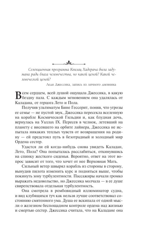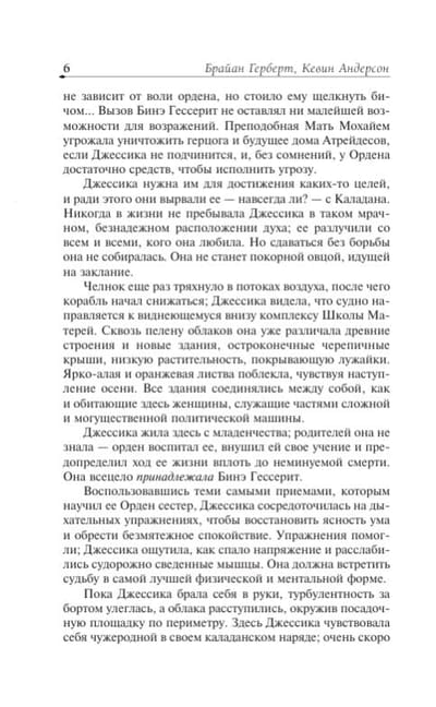 The second book of the prequel trilogy by Brian Herbert and Kevin Anderson, the events of which immediately precede the beginning of Frank Herbert's incomparable "Dune". The quiet, happy life of Lady Jessica - the unofficial but much-loved wife of Duke Leto Atreides and mother of his heir Paul - comes to an end. She is once again summoned to the planet of the Order of Bene Gesserit, where there will be a deadly battle with the mad keeper of the secret of the creation of superhuman. It was she who saw Jessica and Paula as an imminent threat to the long-held hopes of the Bine Gesserit. Meanwhile, the Empire is on the brink of destruction, and the situation can not fix even the Reverend Mother of the Order herself. Sophisticated intrigues are being woven. Intrigues are being built. No one can be trusted. Jessica realizes: the fate of her family hangs in the balance ...