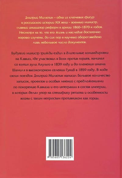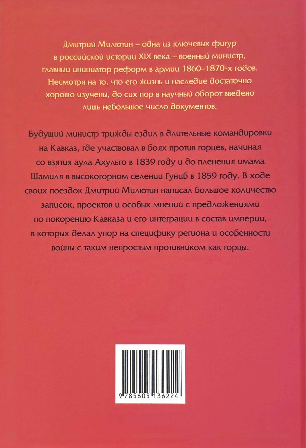 The documents included in this collection, from the collections of the Manuscript Department of the Russian State Library and the Russian State Military Historical Archive, fill this gap. While they shed light on D.A. Milyutin's activities in the Caucasus as an administrator, they also demonstrate the evolution of the Russian authorities' approaches to conquering the region.