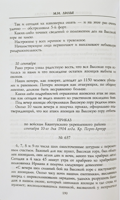 The book is a diary of a hereditary military engineer M.I. Lilye, an active participant in the heroic defense of Port Arthur from the first day to the last. The reader will find in it both general assessments of the Russo-Japanese War and the actions of the generals, and the view of a combat officer "from the trenches". The publication has undoubted scientific and journalistic significance.