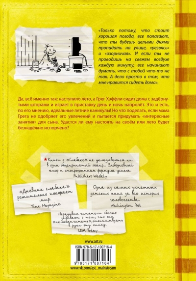 Greg Haffley, the protagonist of the Diary of a Wimpy Kid series, is on summer vacation. And, of course, the best way to spend them is to lock himself in his room and watch TV and play consoles all day long. It's just too bad that Greg's mom doesn't share his idea of a perfect vacation. She's always trying to think of something: she takes her son to the pool, then to the hairdresser, then suddenly opens a reading club at home for the neighborhood kids. But Greg stubbornly continues to bend his line and does everything he can to make sure that his summer is not hopelessly spoiled. Here he is with his friend watching a horror movie for the first time, and here - trying to work, mowing lawns. And then there's the dog in the house! All in all, this summer promises to be truly unforgettable.