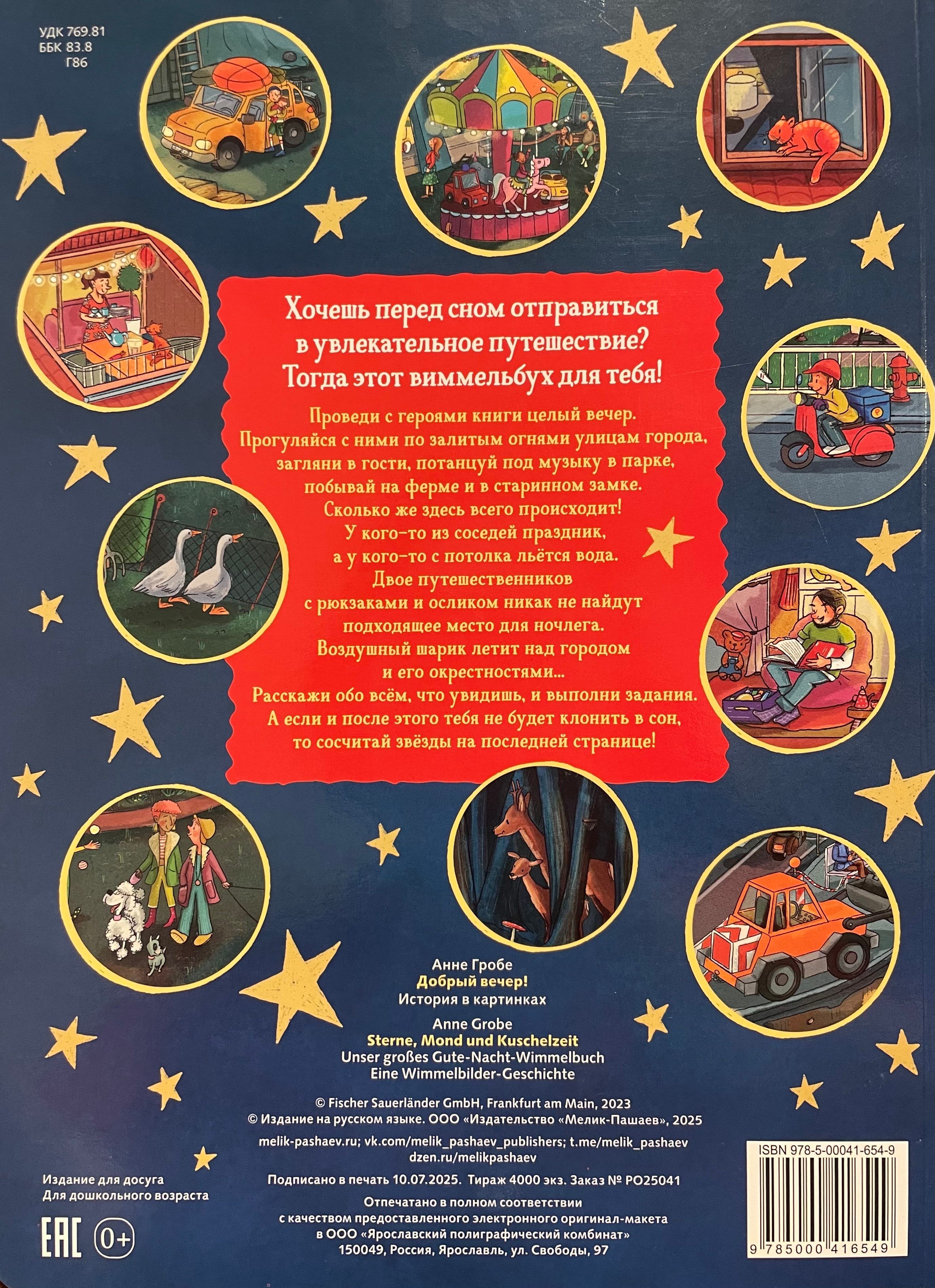 The Wimmelbuch "Good Evening!" was created by German artist Anne Grobe specifically to become an integral part of the nightly bedtime ritual for families with children aged one and a half years and older.