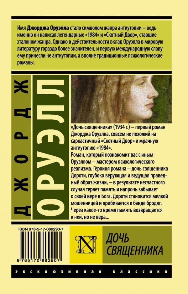 "The Priest's Daughter" - a novel quite different from the sarcastic "Animal Farm" and dystopian dystopia "1984". A novel that will familiarize you and another Orwell - a master of psychological realism. The heroine of the novel - the daughter of a priest Dorothy, a deeply religious and leading a righteous way of life - as a result of an accident loses her memory and completely forgets about her faith in God. Dorothy becomes a petty crook and joins a gang of vagabonds. After some time her memory returns to her, but not her faith....