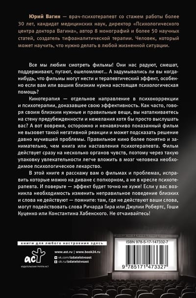 In the book "Doctor, Does Cinema Heal?" In "Cinema Therapy as a Solution to Psychological Problems," I'll tell you about films and problems that can be addressed on the couch with popcorn, not in a therapist's chair. And believe me—the results will definitely be just as good! If you need to change the bad behavior of your loved ones and words aren't working, remember: where your words fail, the words of Richard Gere or Julia Roberts, Gosha Kutsenko or Konstantin Khabensky can. Don't despair!