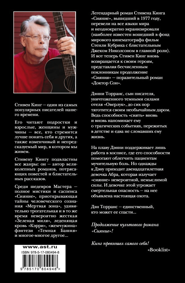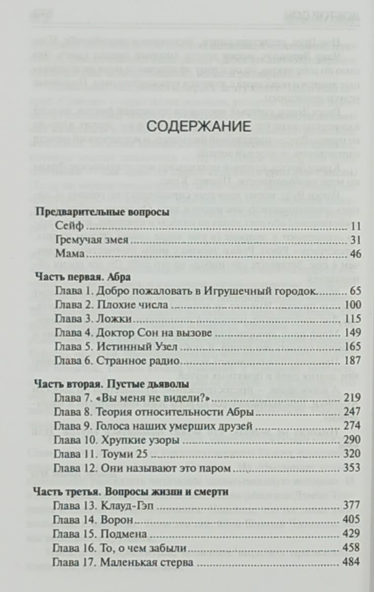 Danny is kept afloat only by his work in a hospice, where his abilities help relieve patients' excruciating pain. But one day, a twelve-year-old girl named Abra comes to Dan, who radiates a "shine" of incredible, unimaginable power. And this girl is in mortal danger - a real hunt has been declared for her.