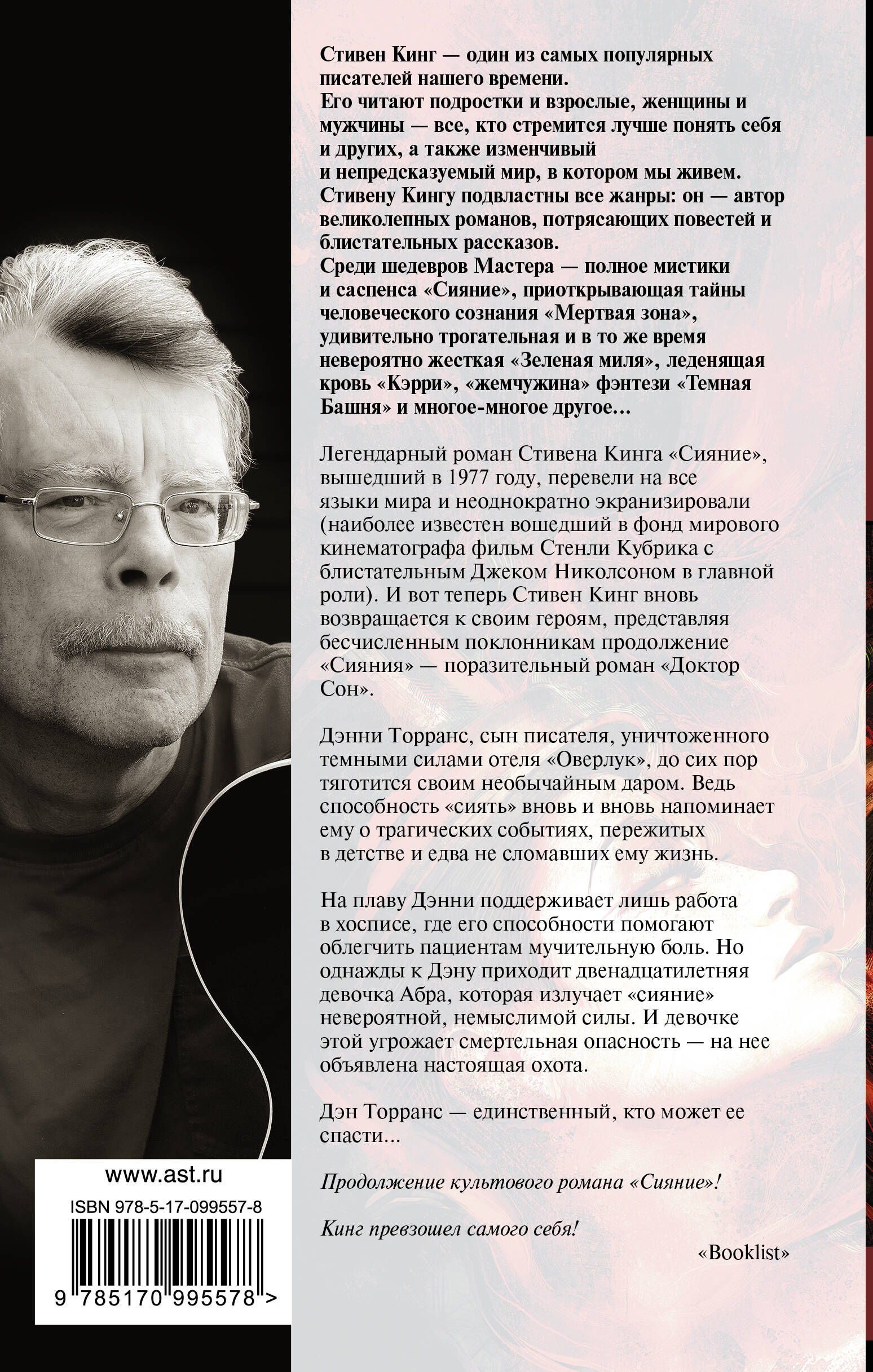 Danny is kept afloat only by his work in a hospice, where his abilities help relieve patients' excruciating pain. But one day, a twelve-year-old girl named Abra comes to Dan, who emits a "shine" of incredible, unimaginable power. And this girl is in mortal danger - a real hunt has been declared for her.