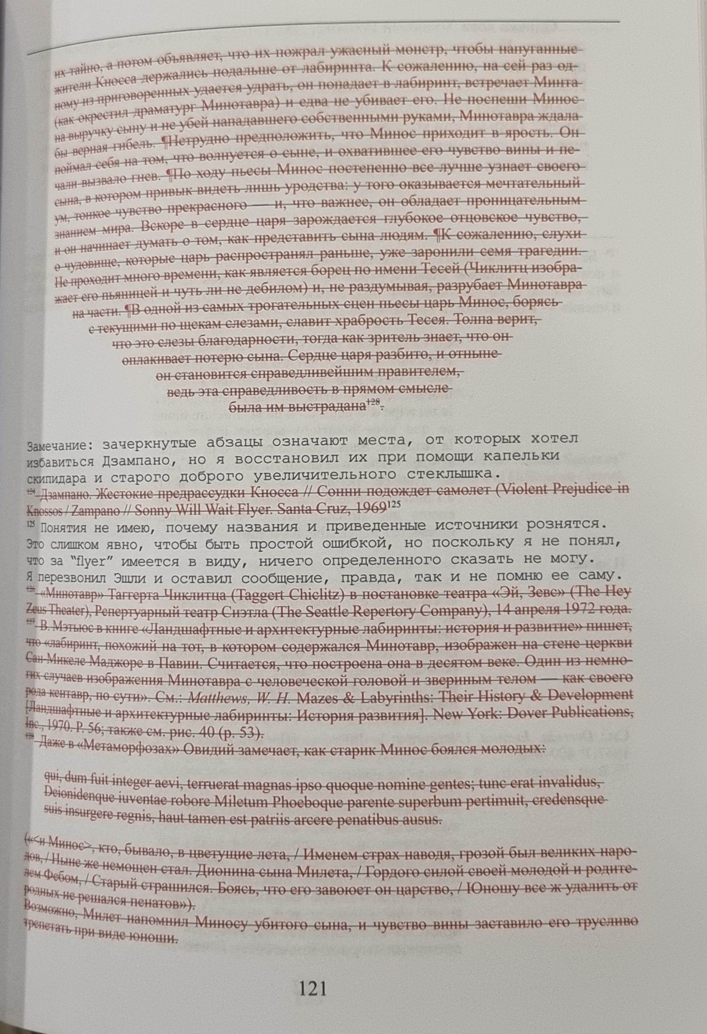 - In a single instance in Chapter XXI, the crossed-out line is highlighted in purple.