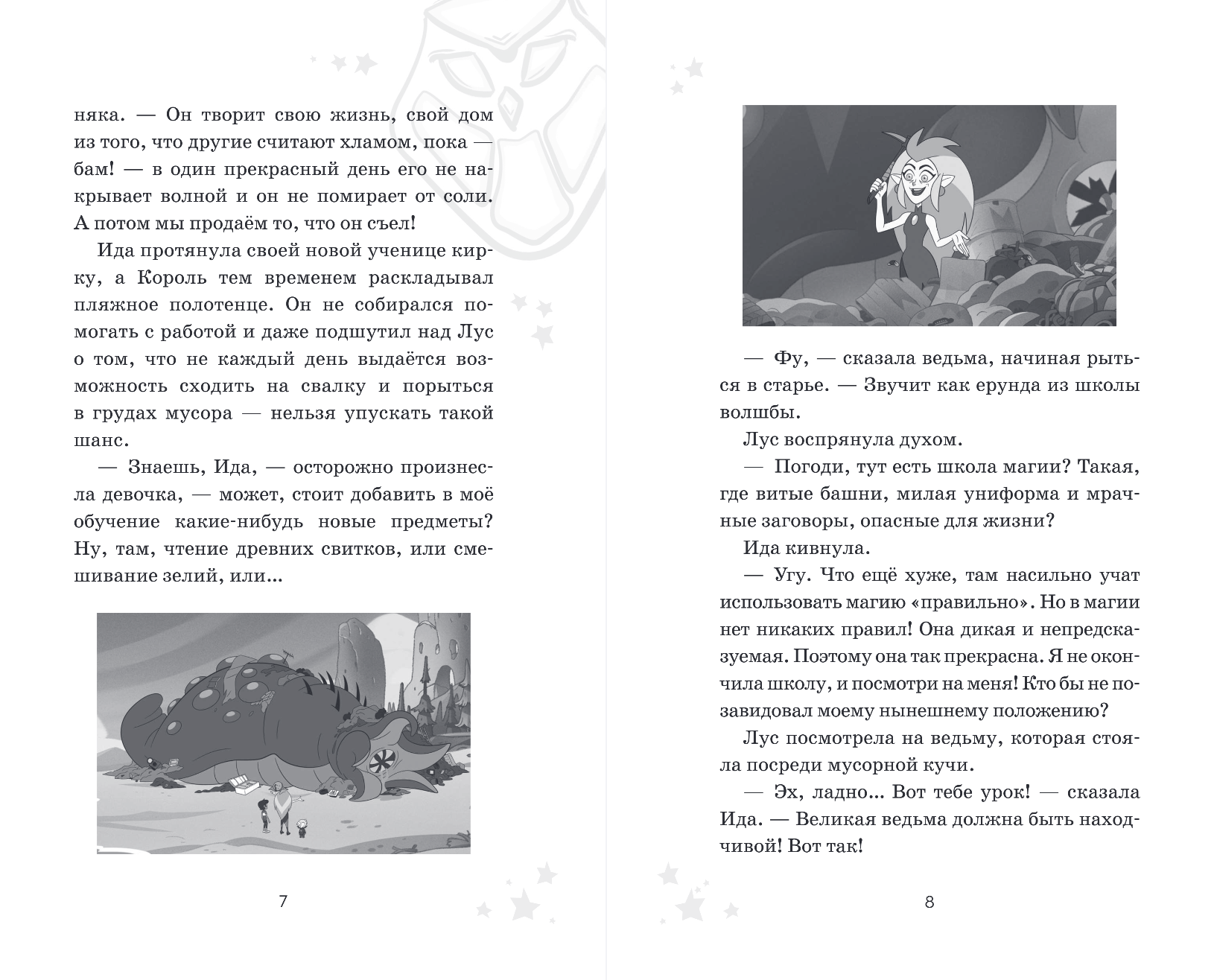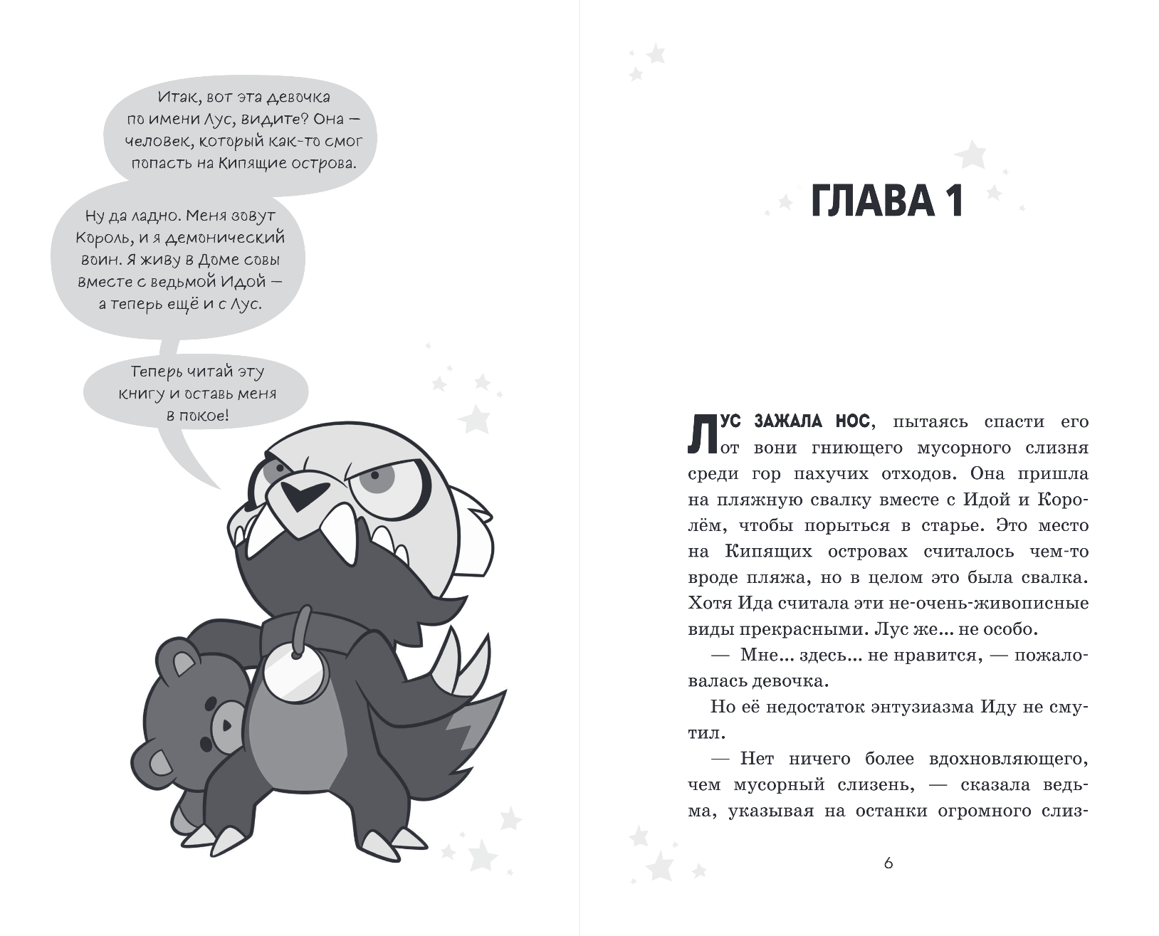 The cartoon "The Owl House" has been airing on the Disney Channel since late 2020 and has already found a loyal fan base among children of all ages. It's also reminiscent of "Gravity Falls" with its unusual characters, amazing fictional world, and incomparable humor. This book retells two episodes from the show's first season, accompanied by black-and-white illustrations from the cartoon. Magic in every snowflake, witches who put monsters to sleep, spells and potions that bring vegetables and toys to life—this is the fantasy world of "The Owl House"!