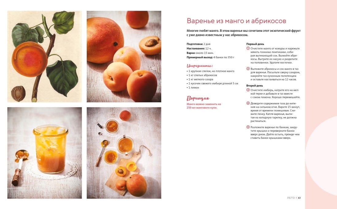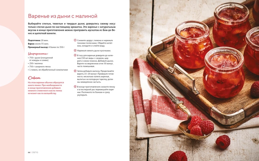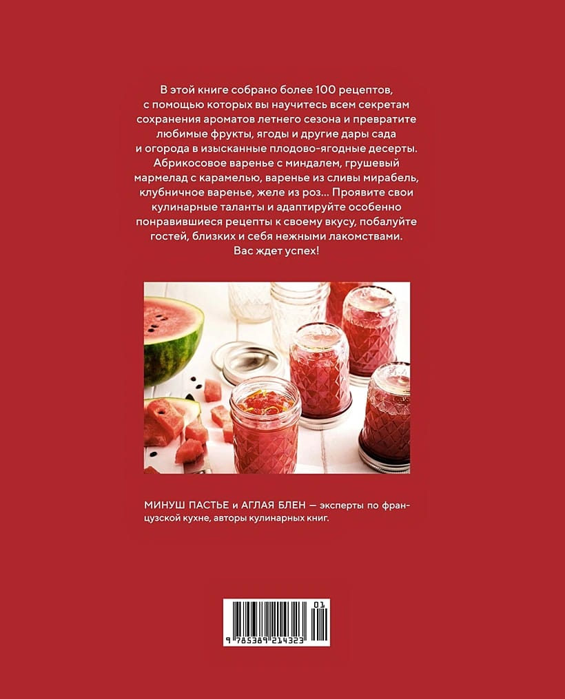 Jams, jellies and other long-lasting sweet desserts can be made from almost any fruit, berries, as well as some types of vegetables and nuts. Get to know the way it is done by famous cooks - French housewives, and you will discover new combinations of flavors and learn how to reveal the flavor of familiar fruits and berries brighter. The book contains more than 100 recipes for processing both fruits from your own garden and vegetable garden (for example, apples, pears, currants, strawberries and much more), and gifts of nature from the bright counters of the store or market (including mango, pomegranate, banana, peach, orange and others). Useful tips on observing the technology of preparation and storage are given, answers to frequently arising questions are given, and seasonality is taken into account. A real master class for lovers of sweet home preparations! "Boiling jam - the best way to slightly delay the time that always passes too quickly. To make it work, follow the simple recommendations that you will find in the pages of this book. It is very important to take seasonality into account: it is impossible to make something worthwhile from hothouse fruits that have never seen the sun. You should not mask the taste with spices or flavorings. A good jam doesn't need any tricks - just ripe fruit and a lot of love." (Minouche Pastier and Aglaia Blain).