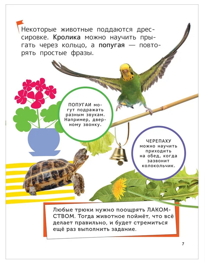 The story about the life of animals will take the child to where it is hot and cold, where there is sand and snow, where giant trees and dwarf shrubs grow. He will learn why you need to run fast in the steppe, dig holes in the desert, and sleep in the forest for the winter. The encyclopedia is intended for joint reading by parents and children. The texts in large type and marked with an orange flag are read by the child, and the texts on rectangular and round plates are read by an adult.