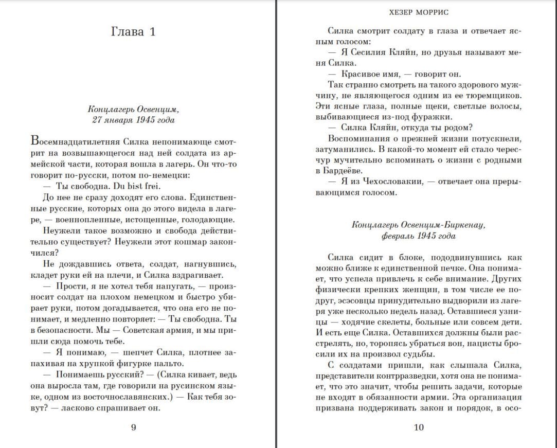 Silka was only sixteen years old when she entered the Auschwitz-Birkenau concentration camp in 1942. The girl's beauty catches the attention of the camp's senior officers, and Silka is forcibly separated from the other female prisoners. She quickly learns that power, even unwanted power, equals survival. The war is over. The camp is liberated. However, Silka is accused of spying and sleeping with the enemy and is sent to the Vorkuta camp. And here Silka faces death, terror and violence on a daily basis. But she is lucky: a kind doctor takes the girl under his wing and begins teaching her to become a nurse. In her quest to survive, the girl discovers a willpower she never knew she had. She begins to tentatively make friends in this harsh, new reality and is surprised to realize that, despite everything that has happened to her, there is room in her heart for love. For the first time in Russian!