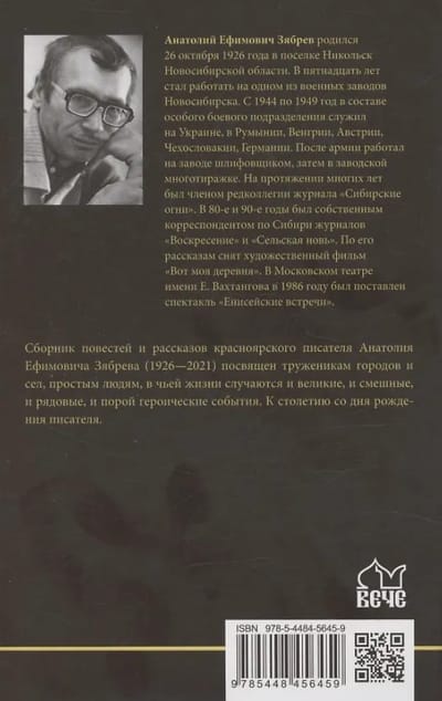 This collection of stories and short stories by Krasnoyarsk writer Anatoly Efimovich Zyabrev is dedicated to the workers of cities and villages, ordinary people whose lives are marked by great, humorous, mundane, and sometimes heroic events. It marks the centenary of the writer's birth.