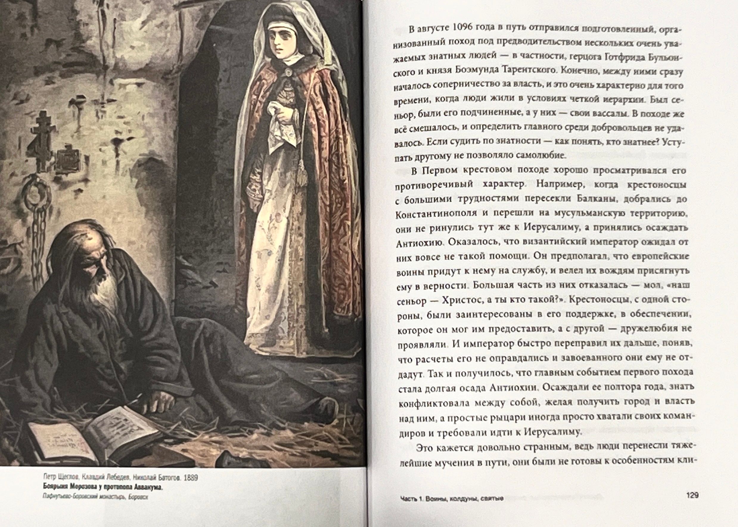 Equally important in the book is everything to do with religion. Between the warrior Joan of Arc, the Old Russian princes Boris and Gleb, and Protopope Avvakum - an abyss of differences. But all of them are united by a fiery faith. What did Joan of Arc strive for? What were the princes Boris and Gleb famous for? The Middle Ages were cruel and beautiful, bloody and religious, Christian and pagan... And at the same time - incredibly mysterious.