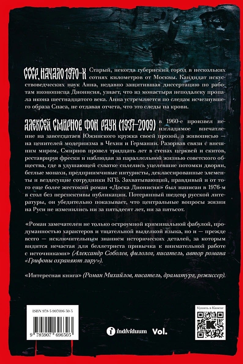 Aleksey Smirnov von Rauch (1937-2009) made a lasting impression on the regulars of the Yuzhinsky circle in the 1960s with his prose and on connoisseurs of modernism in the Czech Republic and Germany with his paintings. Having severed ties with the outside world, Smirnov spent thirty years within the walls of churches and monasteries, restoring frescoes and observing the parallel life of Soviet society, where the surviving descendants of nobles, fugitive monks, enterprising foreign tourists, declassed elements, and the ubiquitous KGB were all entangled in a stifling struggle. The gripping, truthful, and therefore all the more brutal novel, "The Tablet of Dionysius," was written in 1976 and shelved with no prospect of publication. A lost masterpiece of Russian literature, it convincingly demonstrates that the central questions of life in Rus' have not changed in fifty or five hundred years.