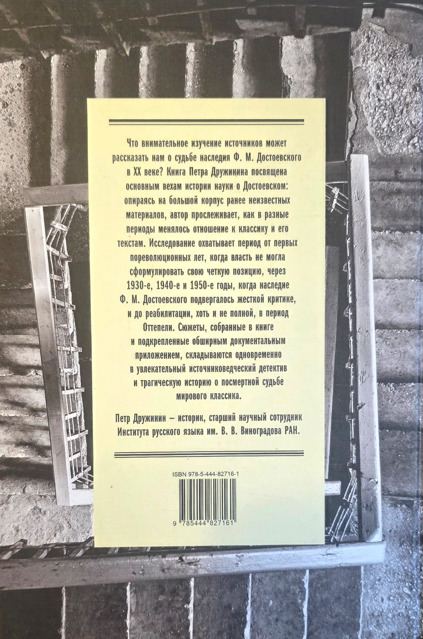 What can a careful examination of sources tell us about the fate of Fyodor Dostoevsky's legacy in the 20th century? Petr Druzhinin's book explores key milestones in the history of Dostoevsky scholarship: drawing on a large body of previously unknown materials, the author traces how attitudes toward the classic author and his texts changed over different periods. The study spans from the early post-revolutionary years, when the authorities were unable to formulate a clear position, through the 1930s, 1940s, and 1950s, when Dostoevsky's legacy was subjected to harsh criticism, to his rehabilitation, albeit incomplete, during the Thaw. The stories collected in the book, supported by an extensive documentary appendix, combine to form both a fascinating source study detective story and a tragic story about the posthumous fate of a world classic.