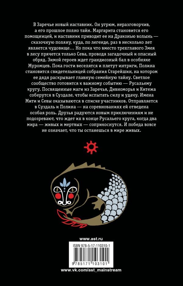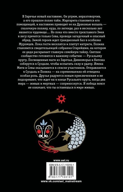 There's a new mentor in Zarechye. He is sullen, taciturn, and his past is full of secrets. Margarita becomes his assistant, and the mentor takes her to the Dragon's Volyn - a fabulous glade, where, according to legend, once every few years is a monster ... But so far, instead of the three-headed Serpent in the forest hides only Seva, conducting a mysterious and dangerous ritual. In winter, the heroes are waiting for a grand ball in the Muromtsev mansion. While the guests are having fun and weaving intrigue, Pauline witnesses the meeting of the Elders, at which her uncle reveals the main family secret. The Light Community is preparing for an important event - the Rusal Circle. Devoted magicians from Zarechye, Divnomorye and Kitezh will gather in Suzdal to test their strength and luck. The names of Mitya and Seva appear on the list of participants.