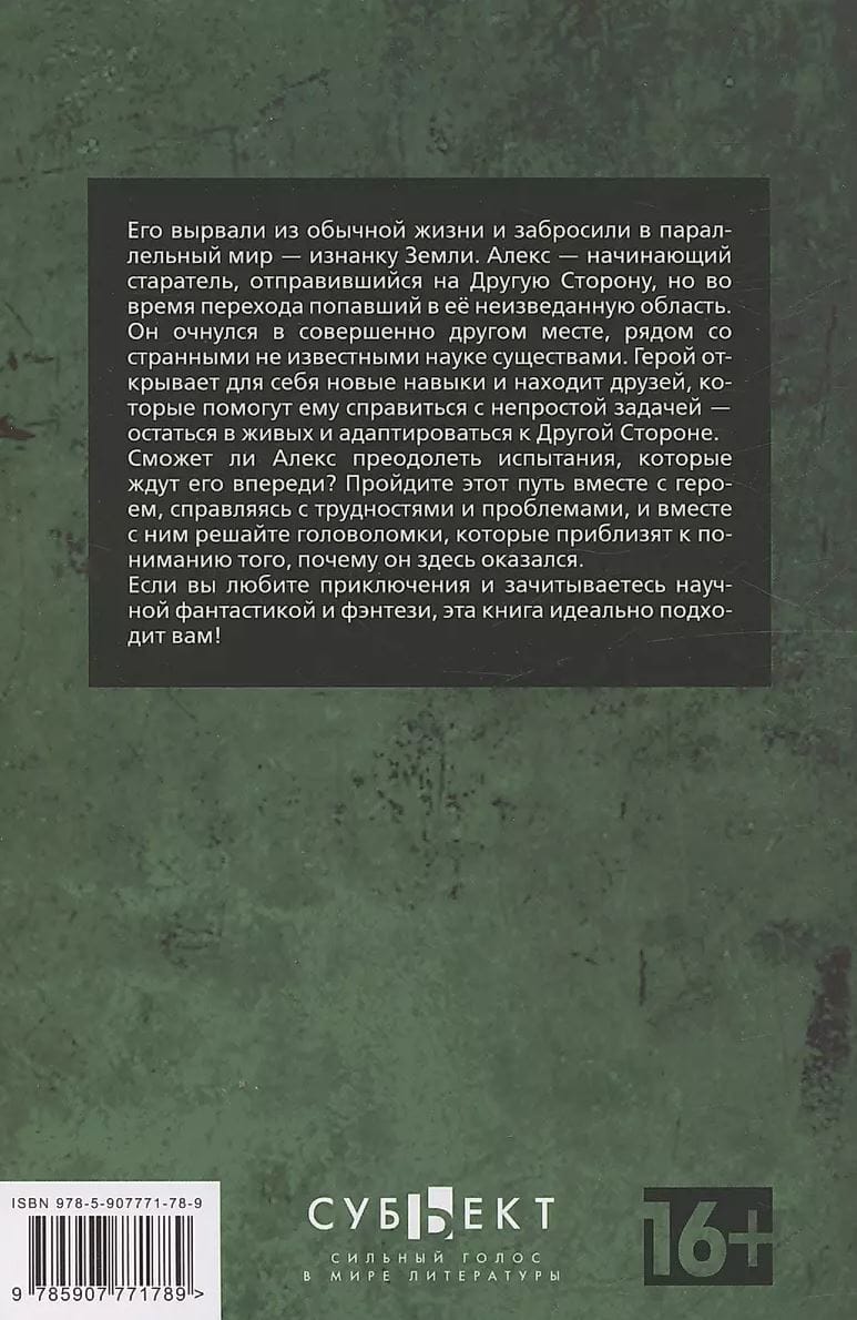 He was torn from his ordinary life and thrown into a parallel world - the inside of the Earth. Alex is a novice prospector who went to the Other Side, but during the transition he ended up in an unknown area. He woke up in a completely different place, next to strange creatures unknown to science. The hero discovers new skills and finds friends who will help him cope with the difficult task of staying alive and adapting to the Other Side. Will Alex be able to overcome the trials that await him ahead? Go through this path with the hero, coping with difficulties and problems, and solve puzzles with him that will bring you closer to understanding why he ended up here. If you love adventures and read science fiction and fantasy, this book is perfect for you!
