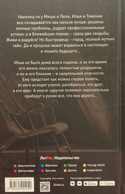 Finally, everything is going well for Misha and Lelya, Ilya and Tomochka: personal problems have been solved, professional successes are pleasing, and in the near future there are two weddings at once. Live and rejoice! But Bystroretsk is a city full of terrible secrets. And the past can burst into the present and deprive the future... Ilya was not home for only a week, and during this time his life was completely destroyed, and he and his loved ones are in mortal danger. He needs to understand as soon as possible who the threat is coming from, figure out who is a friend and who is an enemy. Otherwise, the "other owners" will finally take over everything that is dear to him...