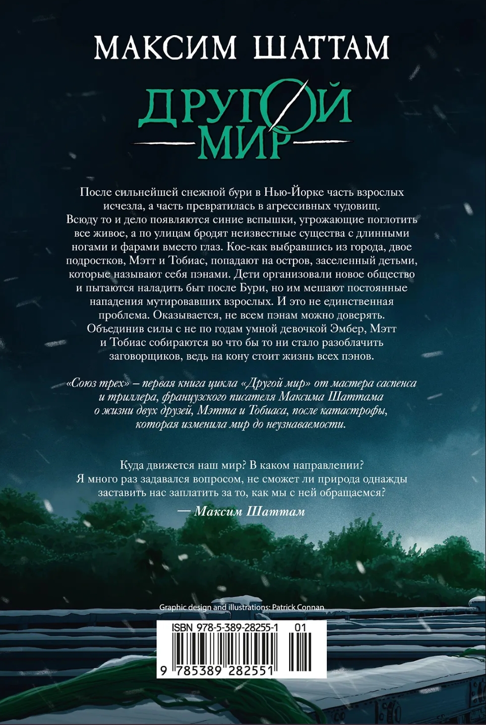 "Union of Three" is the first book in the "Underworld" series from the master of suspense and thriller, French writer Maxime Chattam, about the lives of two friends, Matt and Tobias, after a catastrophe that changed the world beyond recognition.