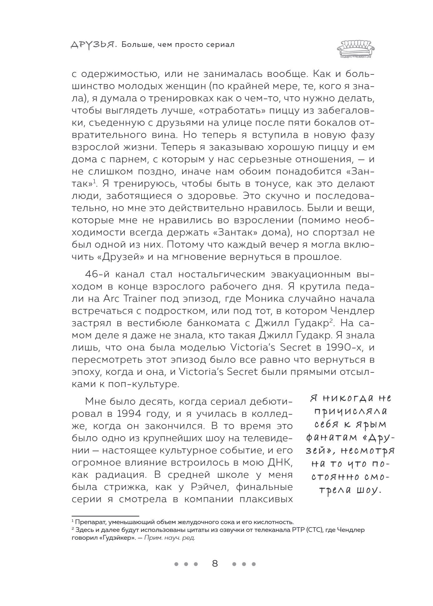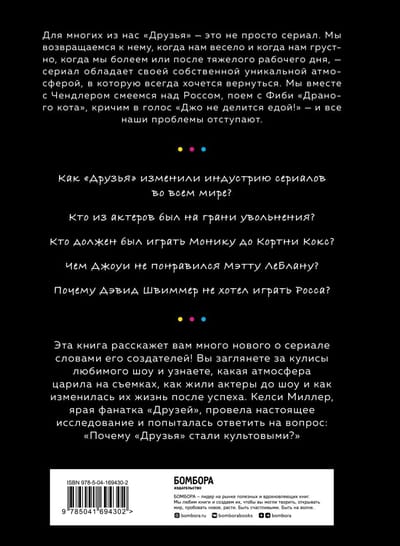 A worldwide bestseller! Now you can not only watch Friends, but also read it! This book is more than just a story about the filming and interesting facts, it is a real study of the popularity of the series. How did it manage to stay on the screens for so long? How could it become a part of each of us and make almost every inhabitant of the planet a little closer to each other? The answer is simple - the authors managed to create six friends for each of us. We come back to the series when we are happy and when we are sad, when we are sick or after a hard day's work - the series has its own unique atmosphere, to which we always want to return. And this book will tell you a little more about the making of the series in the words of its creators! Some facts you already knew, some you are about to learn, but this journey into the nostalgic world of Friends is definitely worth it!