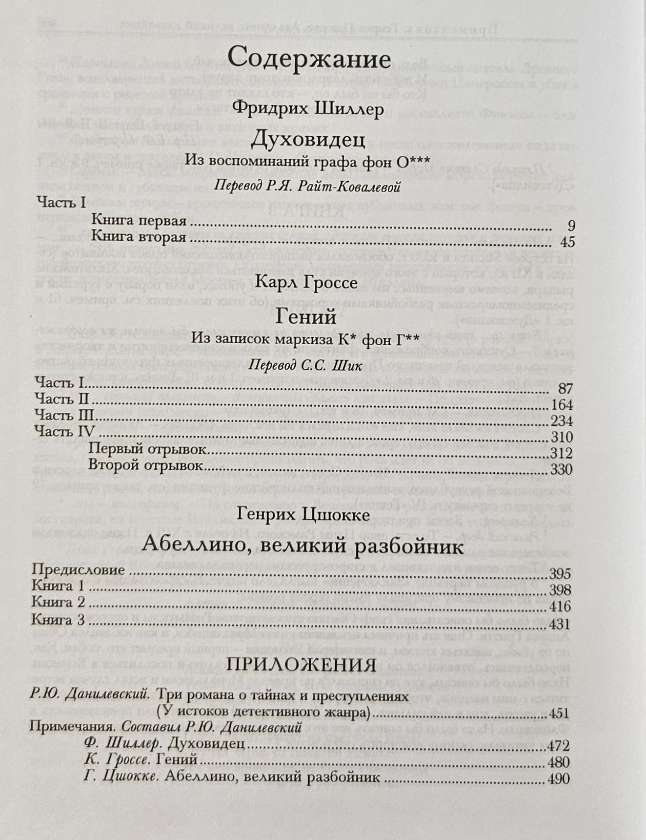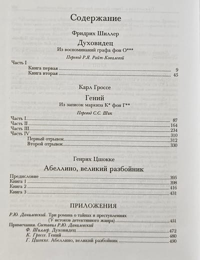 All three stories treat similar themes in different ways and offer the reader not only to enjoy a subtle development of characters (Schiller), a literary game with traditional genres (pastoral, a roguish novel, a Gothic novel and another - Grosse), but also to plunge into the world of passions, heroes-"supermen" (Zshokke), planning the birth of new genres - detective and thriller.
