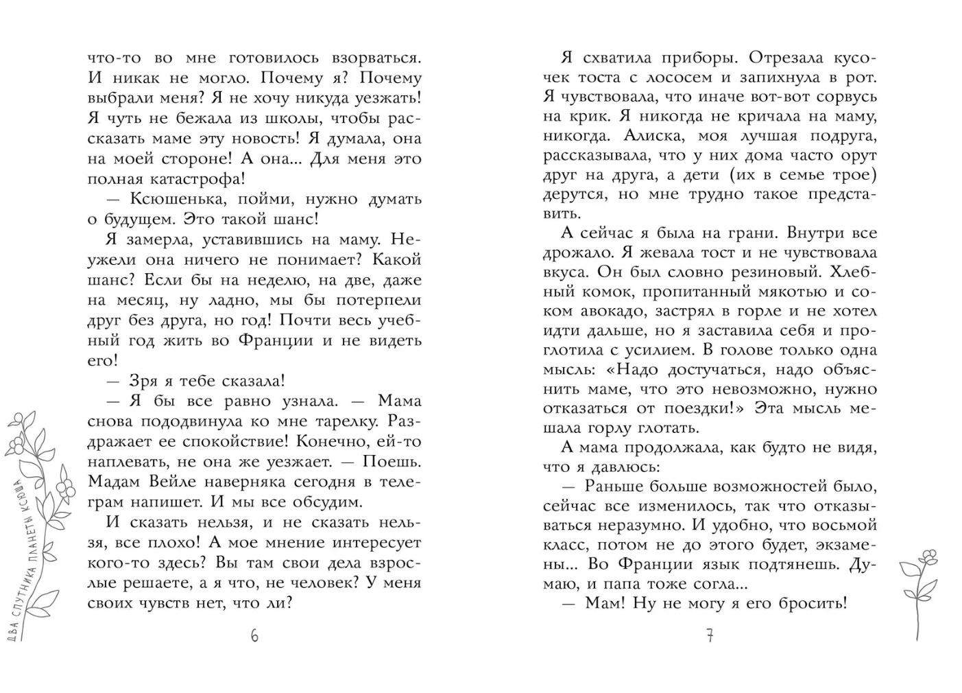 "Two satellites of the planet Xyusha" - a new novella by Tatiana Raevskaya. Xyusha for a year must go to another country. Many girls in her place would jump for joy, but not her. Xenia, on the contrary, dreams that this trip did not happen. After all, all the most important things in her life - here.