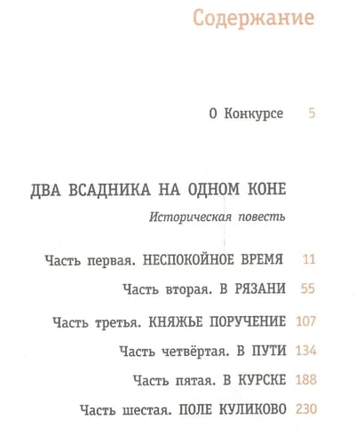 The action of the story takes place at the end of the 14th century, in one of the most dramatic periods of the formation of the Russian state - the gathering of forces of Russian princes to fight the Golden Horde and unite their principalities around Moscow. Golden Horde, Crimean Tatars, Lithuanians, Fryazians... Against the background of this historical multitude, obvious enemies and temporary, unreliable allies of Rus', the fate of the main character, a ten-year-old orphan Vasily, unfolds. He miraculously gets to the court of the Ryazan prince and on the eve of the Battle of Kulikovo receives an important task from him, the fulfillment of which can significantly affect the outcome of the upcoming battle. Will Vasily be able to cope with the prince's assignment? For middle and high school age.
