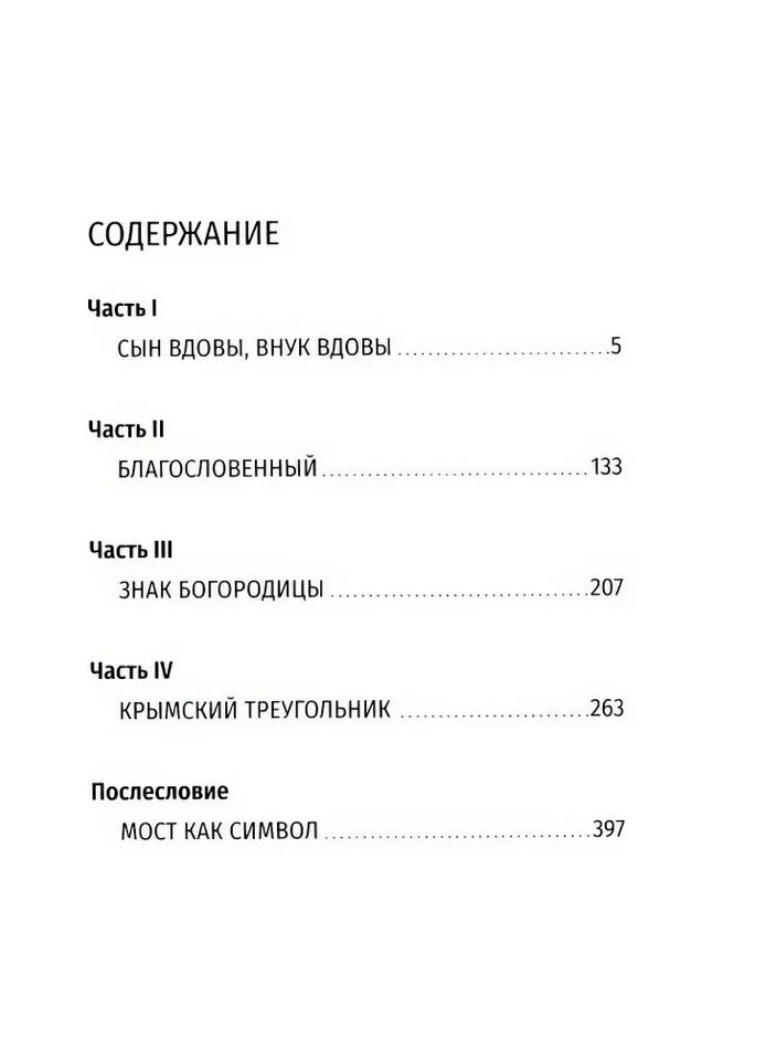 The novel "The Crimean Bridge" follows Oleg Mirovoy, a former naval officer and now a captain in a major business. He will uncover the secrets of the Templars and the rites of Masonic lodges, the bloody secrets of deposed kings, and the inexhaustible wisdom of the holy sites of Mount Athos. He will understand the futility of success, the illusory nature of earthly riches, and the deceitfulness of the idols he has created for himself. The world will turn out to be completely different from what Mirovoy imagined. But fate will give him a chance to start over.
