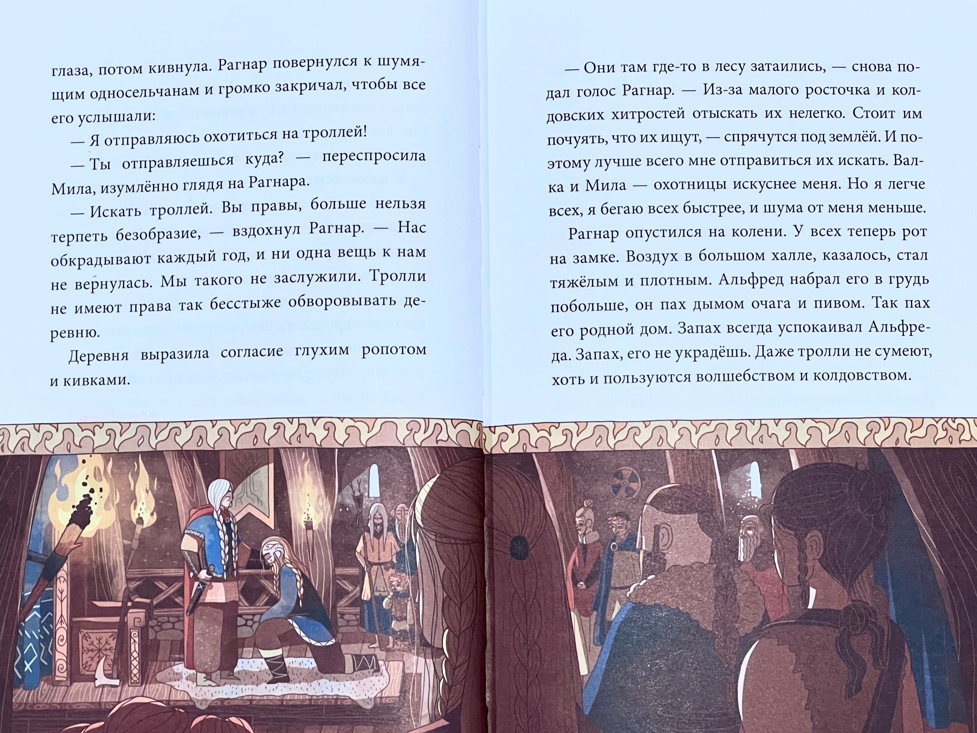 In olden times there lived two sisters: the elder Winter, with its bitter cold and blizzards, and the younger Zimushka, with her merry skating down the mountains and noisy fairs. But since the younger Zimushka disappeared, everything has gone upside down. Her older sister is angry, she sends frosts, the villagers of Burevaya are freezing, and trolls steal their firewood and utensils. Viking Rangar has to go to the forest to find the trolls and return their loot. But his nephew, ten-year-old Alfred, knows that he must find Winter, and then the troubles will end. Alfred follows his uncle into the dark, icy forest, where he will meet real magic... A winter tale with the color of Scandinavian folklore about courage, loyalty and how important it is to have a sense of humor even in the coldest season.