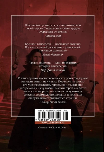 Waxillium Ladrian spent many years fighting a secret criminal organization called the Circle, led by his sister Telsin. Eventually, age took its toll, and Wax took up politics and raising children. But now Wayne and Marasi have discovered evidence that the Circle has resumed its activities, which are extremely dangerous for the country. The criminals are benefiting from the conflict between the capital Elendel and the Outlying Cities. Neighbors, the inhabitants of the recently discovered Southern Continent, threaten, if not war, then serious trouble, and Harmonia, the patron god of Scadrial, has her own worries. During an experiment on rare metals, Wax makes a frightening discovery, and he is forced to return to the craft of a lawman ...
