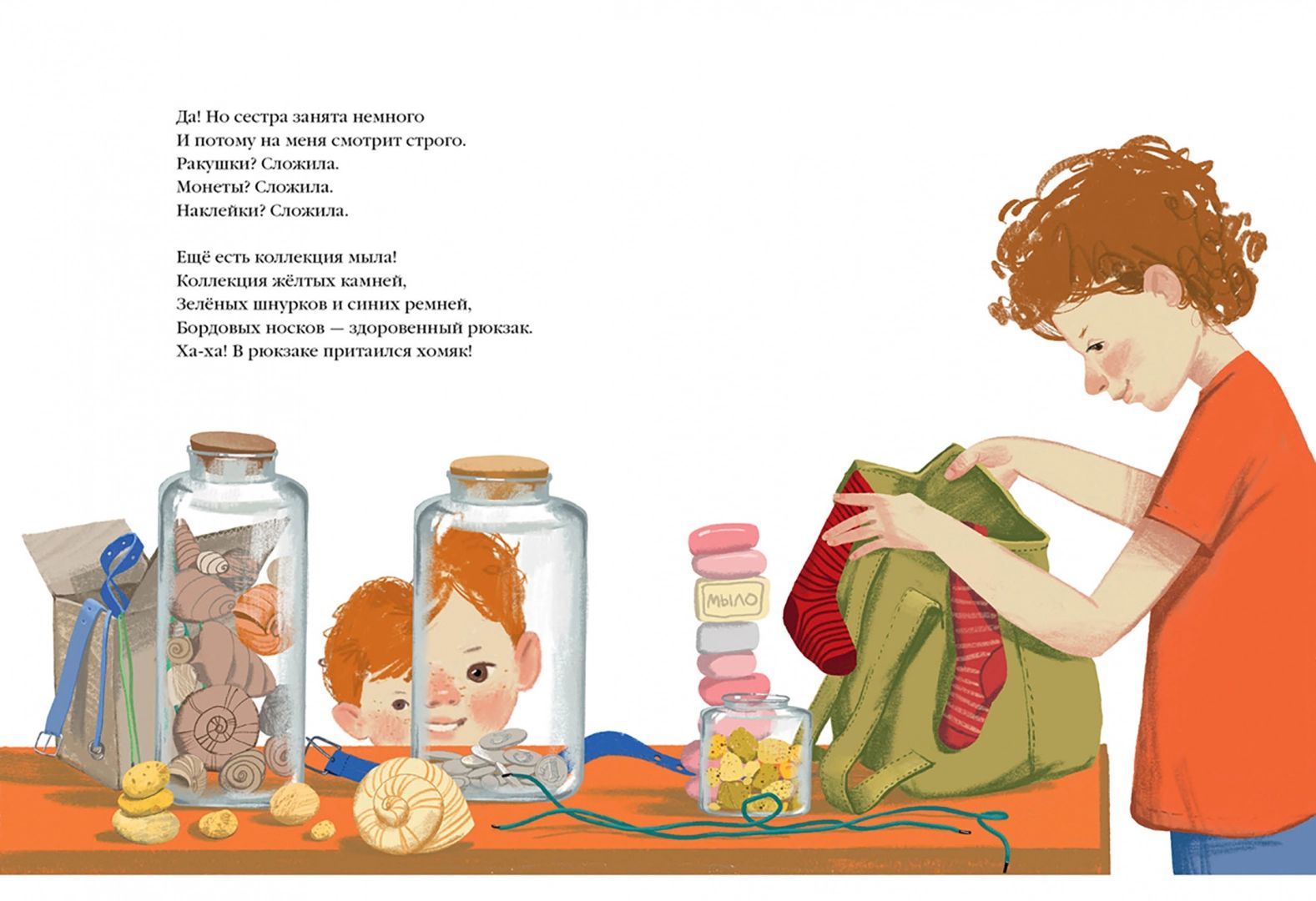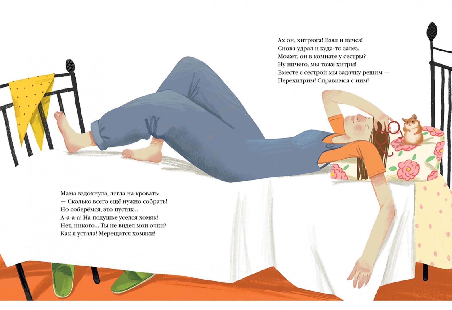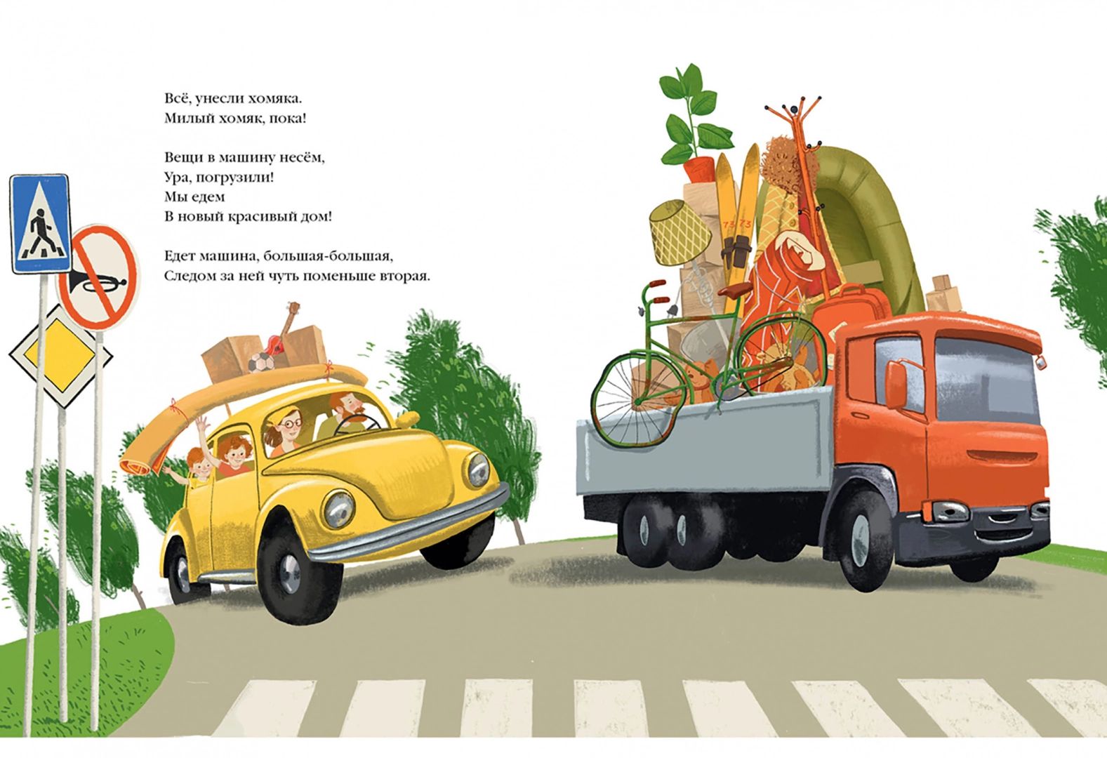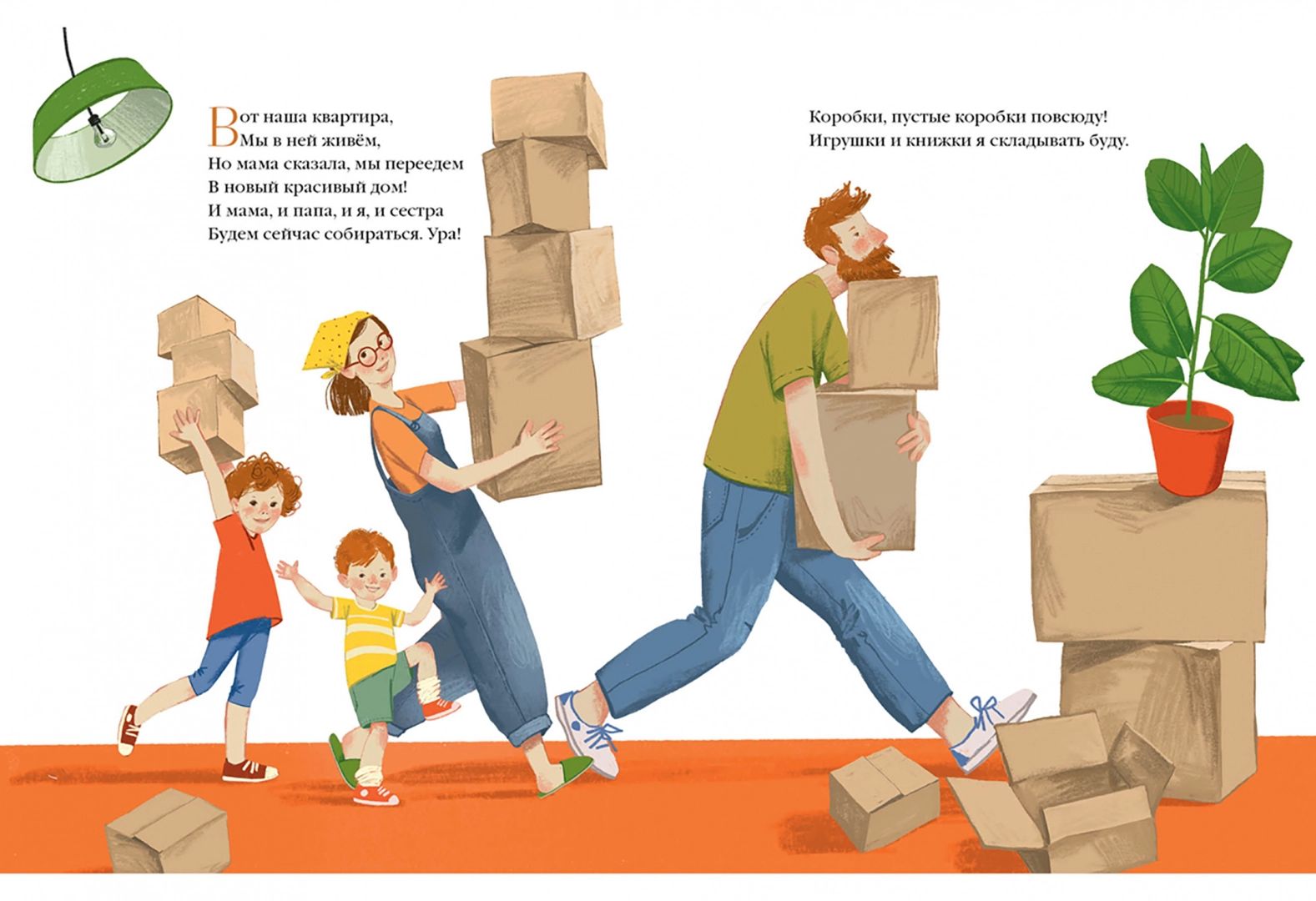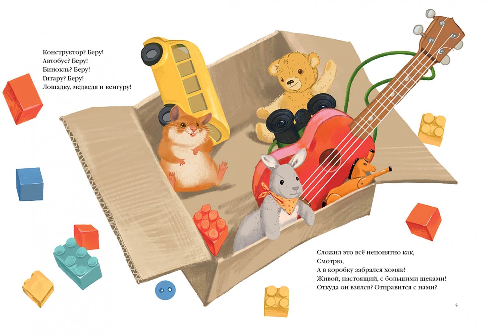 A cheerful family is about to move to a new house. There's a lot of hustle and bustle, with everyone running around and packing. But what is it? There's a hamster in the toy box. Where did it come from? And here he is already on the shelf in the pantry, at mom on the pillow, at sister in the backpack, on the cupboard, in the pot - everywhere the fluffy fat man keeps up. And suddenly they took him away... How could it be?