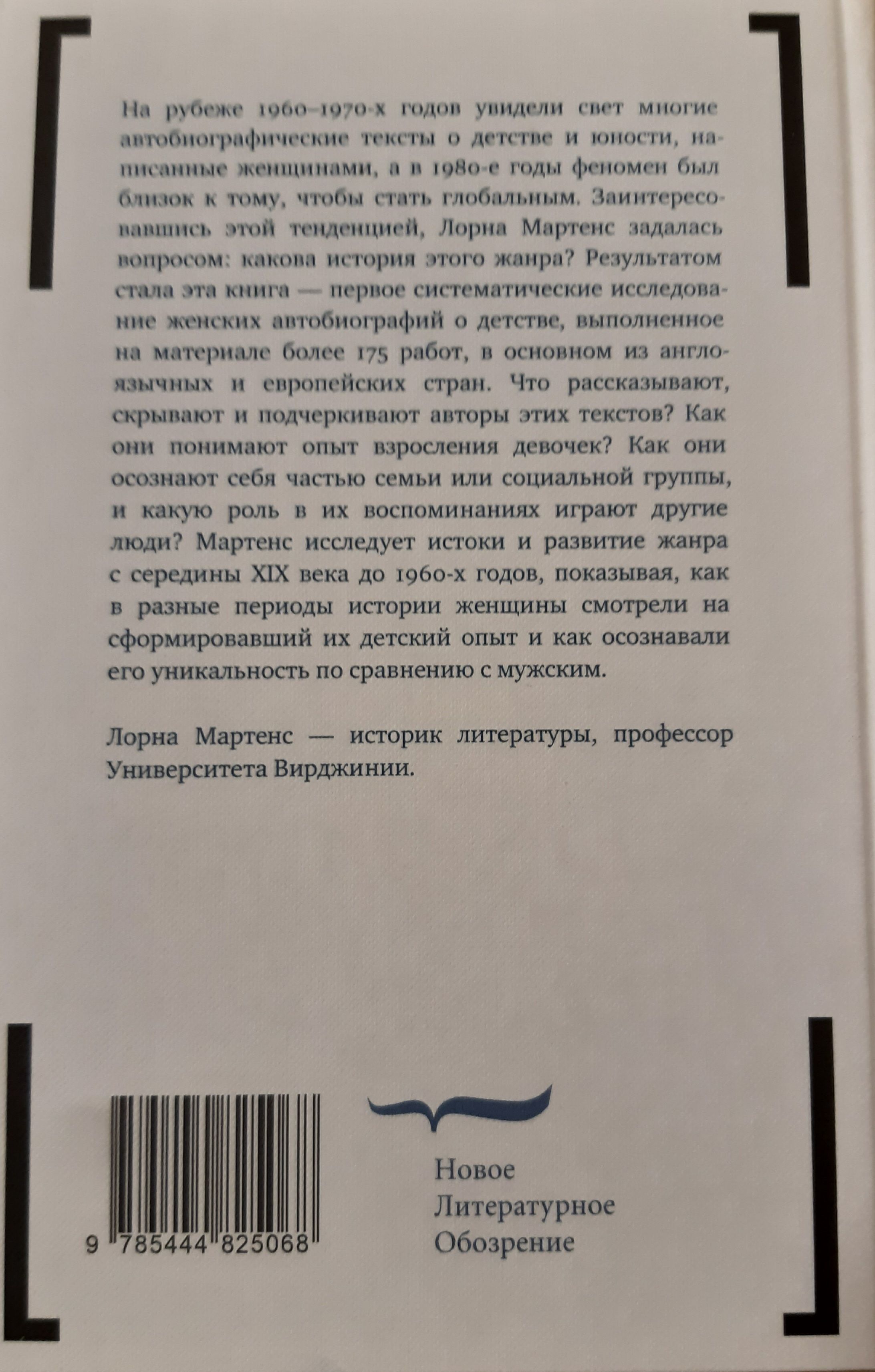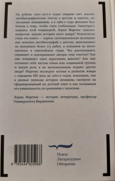 At the turn of the 1960s and 1970s, many autobiographical texts about childhood and adolescence written by women were published, and in the 1980s the phenomenon was close to becoming global. Interested in this trend, Lorna Martens wondered: what is the history of this genre? The result is this book, the first systematic study of women's autobiographies of childhood, based on more than 175 works, mostly from English-speaking and European countries. What do the authors of these texts tell, conceal, and emphasize? How do they understand the experience of growing up as girls? How do they recognize themselves as part of a family or social group, and what role do others play in their memories? Martens explores the origins and development of the genre from the mid-nineteenth century to the 1960s, showing how, at different points in history, women looked at the childhood experiences that shaped them and how they recognized their uniqueness in comparison to men's. Lorna Martens is a literary historian and professor at the University of Virginia.