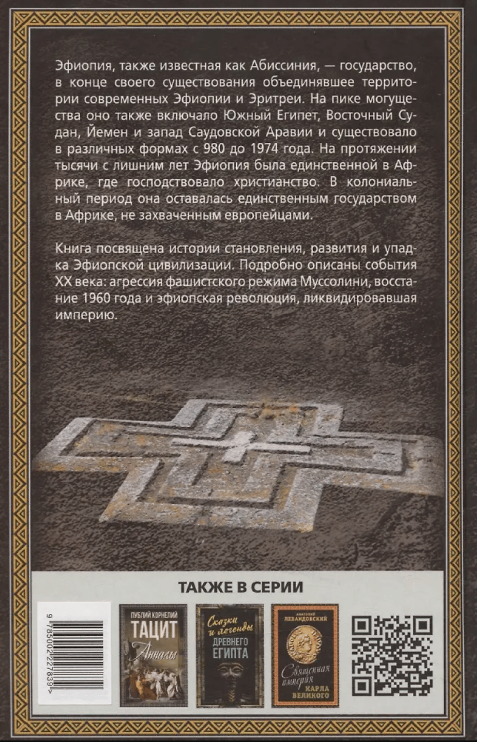 Ethiopia, also known as Abyssinia, was a state that at the end of its existence united the territories of modern-day Ethiopia and Eritrea. At the height of its power, it also included southern Egypt, eastern Sudan, Yemen, and western Saudi Arabia, and existed in various forms from 980 to 1974. For over a thousand years, Ethiopia was the only country in Africa where Christianity was dominant. During the colonial period, it remained the only state in Africa not captured by Europeans. The book is devoted to the history of the formation, development, and decline of Ethiopian civilization. The events of the 20th century are described in detail: the aggression of the fascist regime of Mussolini, the Decembrist uprising of 1960, and the Ethiopian revolution that liquidated the empire.