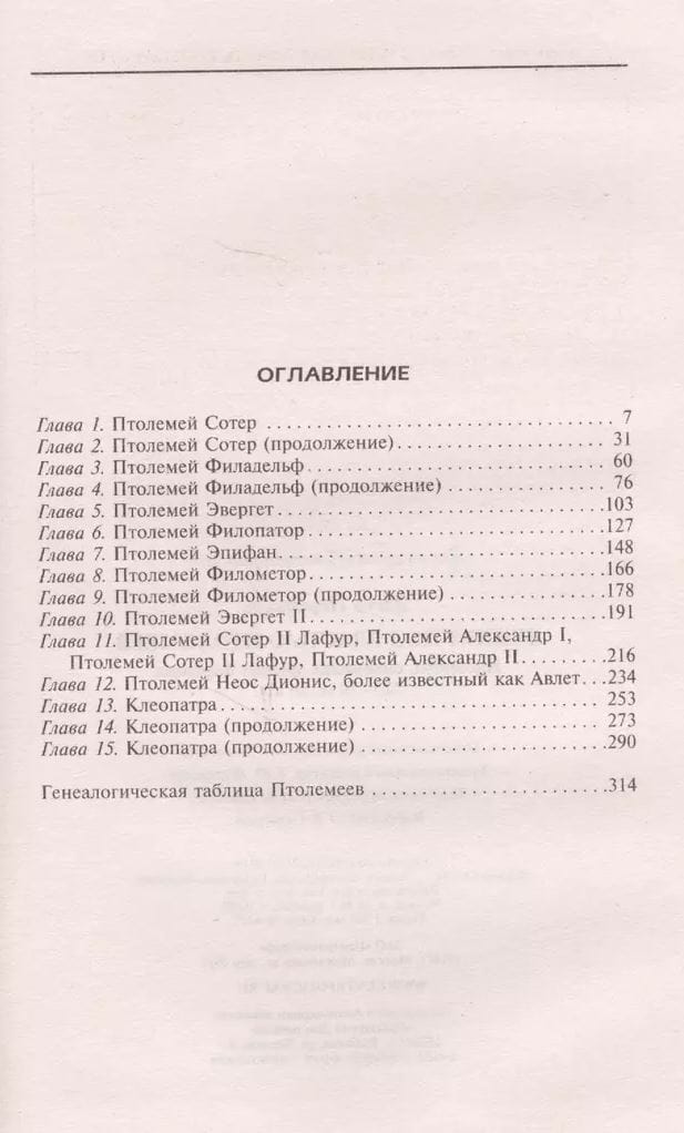 Egypt - the country of kings and gods - since time immemorial preserved cultural identity, a special way and traditions of succession. Conquered by Alexander the Great, the ancient land of the pharaohs was ruled by foreigners - for three centuries Egypt was ruled by a powerful Ptolemaic dynasty. In this book you will find detailed portraits of kings and queens from the Macedonian family of Lagids - from Ptolemy Soter, the wisest and most humane ruler of the Hellenistic world, to Cleopatra VII, insidious and seductive, after the death of which Egypt became one of the provinces of the Roman Empire. The author vividly and vividly describes the character and personal relationships of the descendants of Ptolemy I, some of which contributed to the prosperity of the state, while others, mired in vices, brought about the imminent collapse of the monarchy