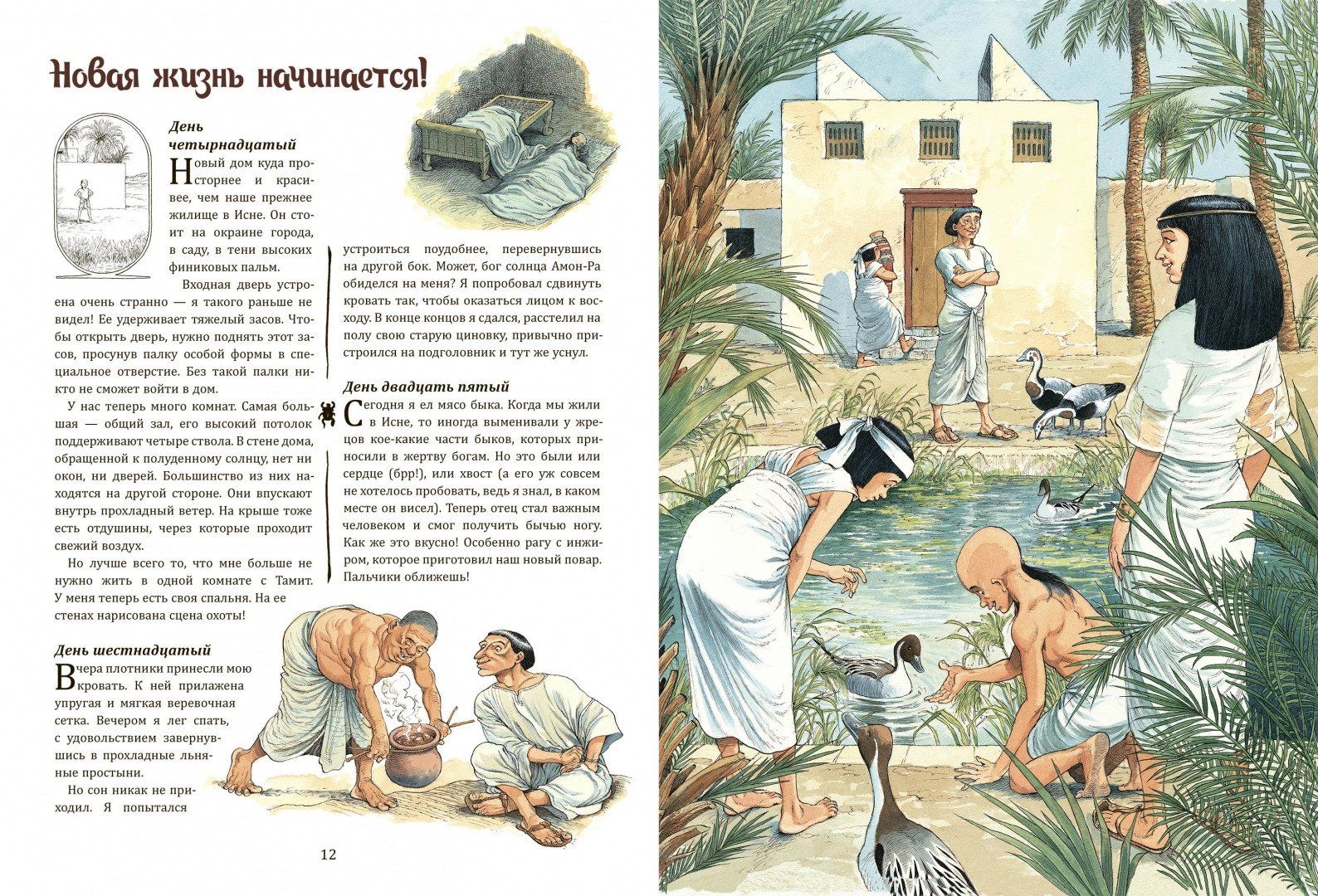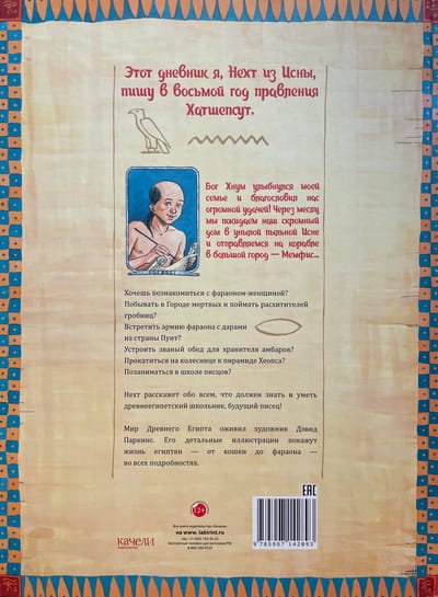 I, Nekht of Isna, am writing this diary in the eighth year of Hatshepsut's reign. The god Khnum has smiled upon my family and blessed us with great good fortune! In a month, we will leave our humble home in dreary, dusty Isna and set sail for the great city of Memphis... Would you like to meet a female Egyptian pharaoh? Visit the City of the Dead and catch tomb robbers? Meet the pharaoh's army with gifts from the land of Punt? Host a dinner party for the keeper of the granaries? Ride a chariot to the Pyramid of Khufu? Study at a school for scribes? Nekht will tell you everything an ancient Egyptian student, a future scribe, should know and be able to do! The world of Ancient Egypt has been brought to life by artist David Parkins. His detailed illustrations will show the lives of the Egyptians—from cats to pharaohs—in every detail.