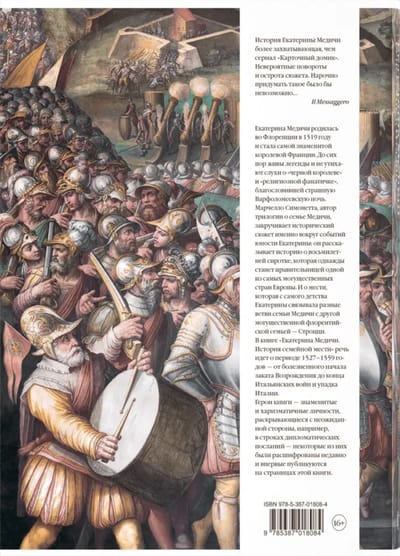 The first two books in the trilogy—"The Enigma of Montefeltro" and "Foxes and Lions"—were recently published in Russian for the first time and immediately became bestsellers in Russia. Featuring over 130 high-quality illustrations of masterpieces by Michelangelo, Titian, Santi di Tito, Raphael, Giorgio Vasari, and other Renaissance works, carefully selected with the active participation of the author, Italian scholar and professor of Renaissance history and literature Marcello Simonetta. Catherine de' Medici was born in Florence in 1519 and became the most famous queen of France. Legends and rumors about her as the "Black Queen," a "religious fanatic" who blessed the dreadful St. Bartholomew's Day massacre, continue to rage. Marcello Simonetta, author of the Medici trilogy, spins a historical plot around the events of Catherine de' Medici's youth: he tells the story of an eight-year-old orphan who would one day become the ruler of one of the most powerful countries in Europe. He also tells the story of the revenge that, from her childhood, linked the various branches of the Medici family with another powerful Florentine family, the Strozzi.