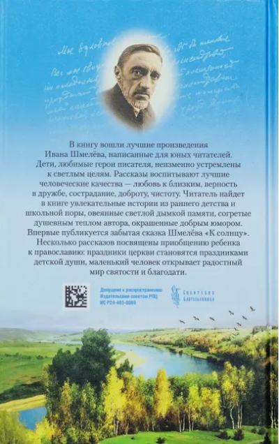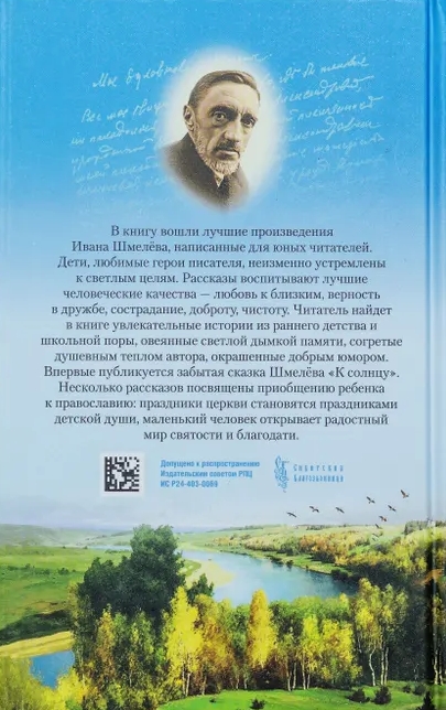 The book includes the best works by Ivan Shmelev, written for young readers. Children, the writer's favorite heroes, are invariably striving for bright goals. The stories cultivate the best human qualities - love for loved ones, loyalty in friendship, compassion, kindness, purity. The reader will find in the book fascinating stories from early childhood and school days, shrouded in a bright haze of memory, warmed by the author's spiritual warmth, colored with good humor. For the first time, Shmelev's forgotten fairy tale "To the Sun" is published. Several stories are dedicated to introducing a child to Orthodoxy: church holidays become holidays of a child's soul, a little person discovers a joyful world of holiness and grace.