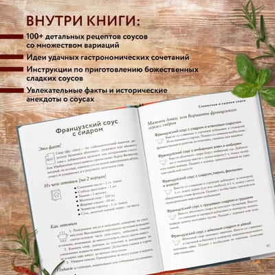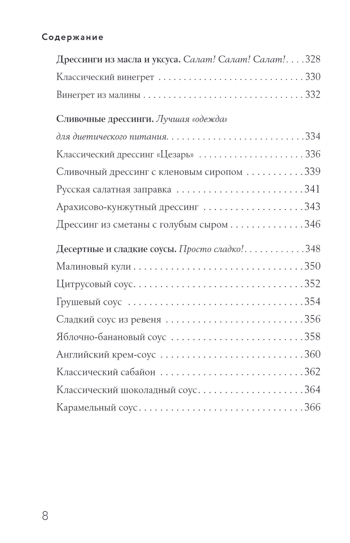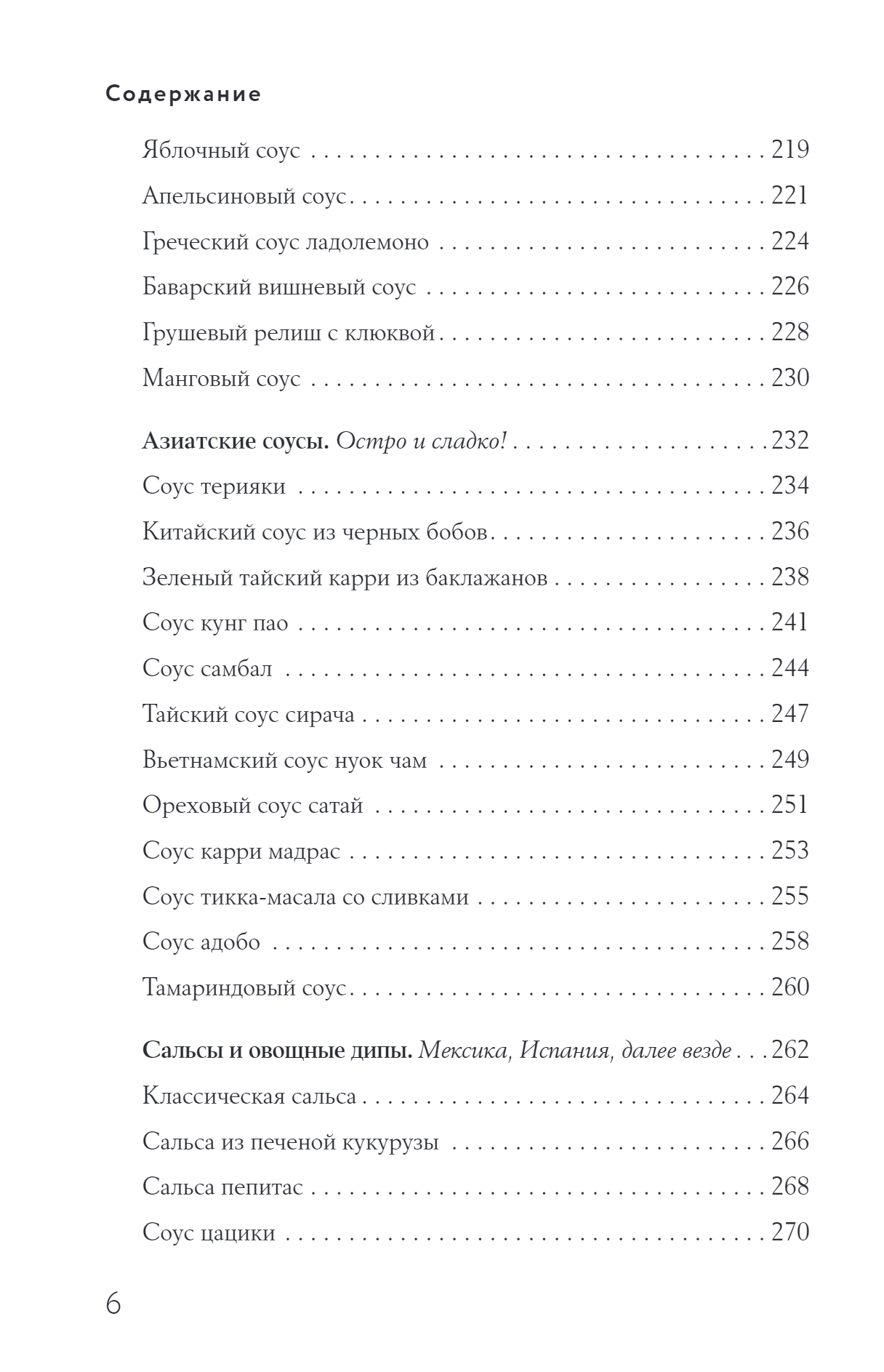 We know that sauce makes any traditional dish extraordinary. We also know a few sauces that our family and friends have approved of. But we still wonder: what exactly is a sauce and why does it make such a difference in the flavor of a dish for the better? This book unravels many of the mysteries surrounding this mystery! What sauces are like in terms of consistency. What are the principles of the basic sauces: white, red, hollandaise, sour cream. The simplest but most comprehensive classification of sauces. Auguste Escoffier's mother sauces. With what and from what to cook. And finally, recipes for emulsified, tomato, cheese and cream, sweet and sour sauces, herb and barbecue sauces, as well as dips, salsas and dressings. All the world's experience is concentrated in this edition. Such a detailed encyclopedia of sauces with many facts, tips, and recommendations has never been on the book market.