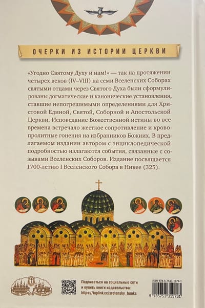 The proposed publication is dedicated to the history of the convocations of the seven Ecumenical Councils, when over the course of four centuries (IV-VIII) the formulations of dogmatic and canonical rules were refined, which became the embodiment of the infallible truth for Christ's One, Holy, Catholic and Apostolic Church. The author describes with encyclopedic detail the events associated with the complex political and ecclesiastical situation in the Roman Empire of that era.